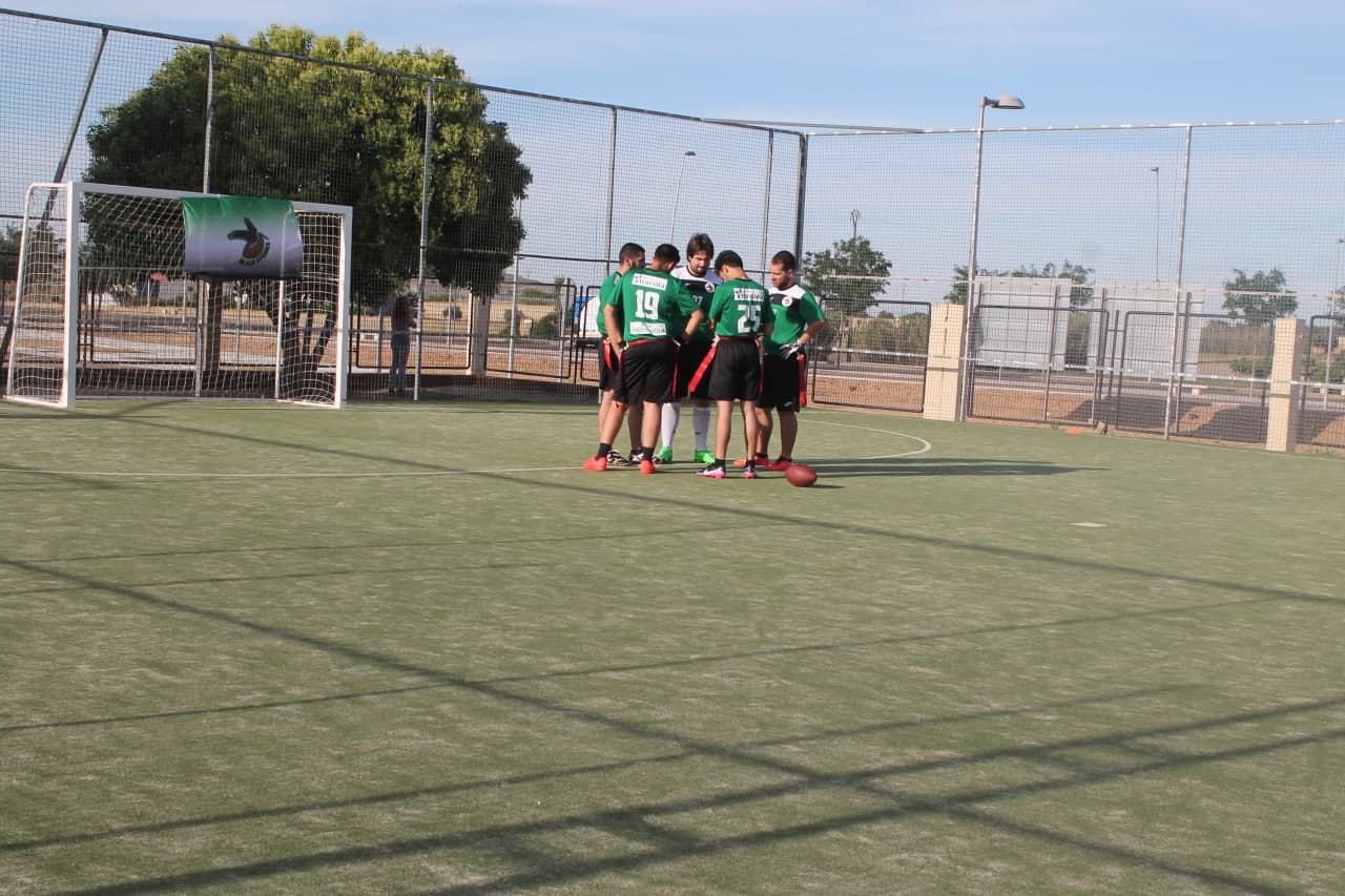 Magnifíca tarde que pasamos este sábado 20 de mayo en la pista polivalente del Poliderpotivo Municipal Romero Cuerda, donde los seniors jugaron frente a dos equipos cadetes que pusieron las victorias de los “grandes” lo más difícil que pudieron, en esta I Copa Villanueva de la Serena de Flag Football, únicamente con jugadores de Black Storks.