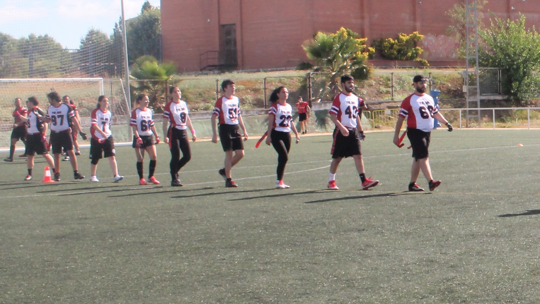 Oviedo MadbullsLos tres equipos que finalizaron en tercera posición de sus respectivos grupos, entre los que se encontraba Black Storks, pelearon por la séptima plaza. A los anfitriones les tocó lidiar con los dos conjunto de Oviedo. Frente a Madbulls, la primera mitad finalizó con máxima igualdad (7-7, con touchdown de Perla y extra de Alberto), pero la segunda parte fue un monólogo de los de Oviedo tanto en ataque (cuatro anotaciones con conversión, todas ellas del jugador número #17) como en defensa, desde la que lograron interceptar en un par de ocasiones cuando aún teníamos opciones de meternos en el partido.