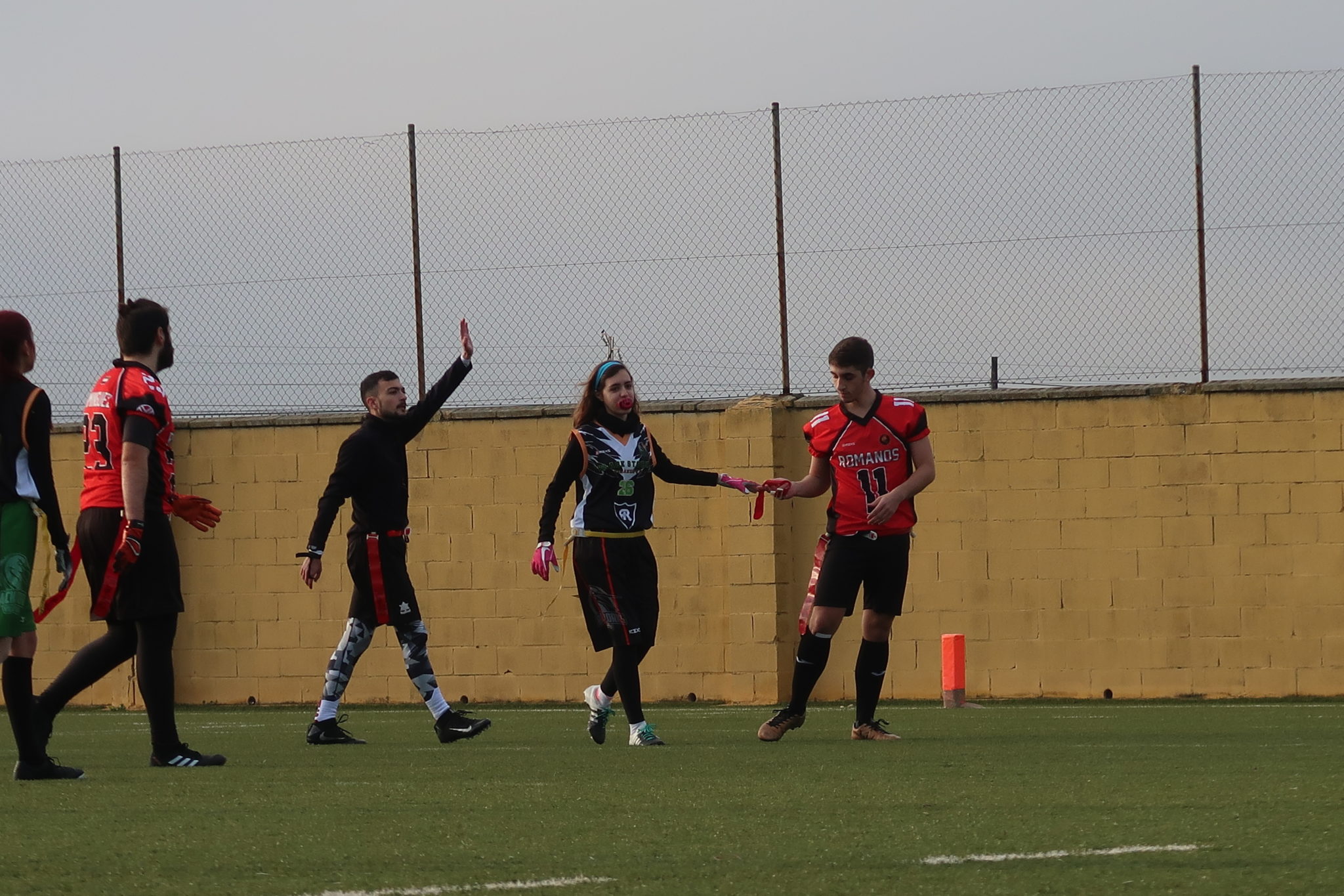 Pero la segunda mitad fue muy diferente. La defensa romana se mantuvo y su ataque se encargó de hacer las cosas poco a poco y bien, para anotar en casi todos sus drives y marcharse en el marcador, el cual terminó de forma abultada (35-7), con 5 touchdowns, 1 safety que sufrimos en la primera parte y 4 puntos extras. A pesar de que Blanca obró un nuevo sack y que Fory interceptó en un punto extra, el grupo defensivo liderado por Sega y muy renovado con las incorporaciones esta temporada del propio Fory, Blanca y Mireia, no supo contener al rival en toda la segunda parte. Víctor Calle era baja por un esguince de tobillo que lo tendrá ausente dos semanas.