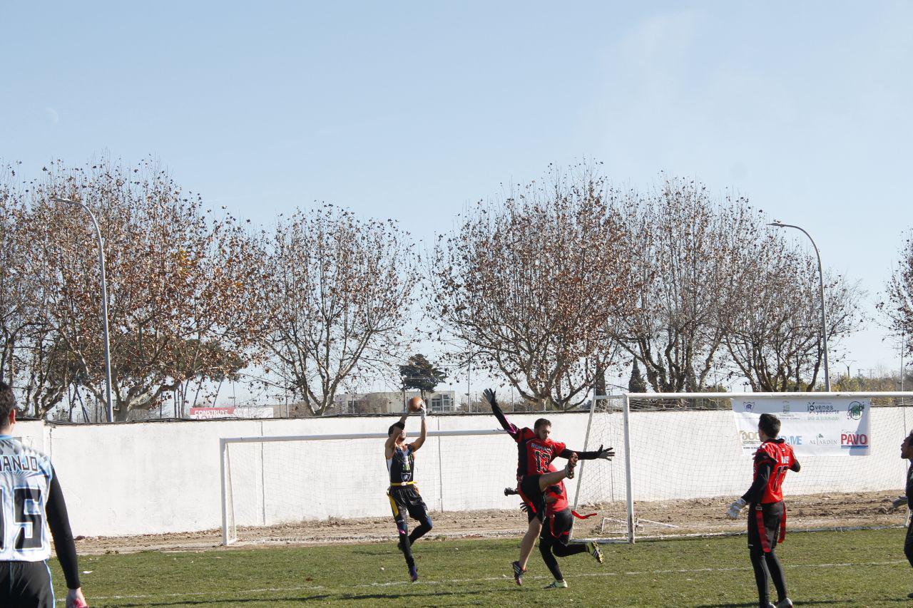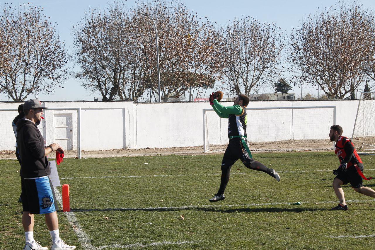 Tras vivir un emocionante partido que abrió la jornada en “El Romerito” entre Ducks y Romanos, el sorteo nos deparó jugar los dos siguientes enfrentamientos de seguido, primeramente ante los defensores del título. De nuevo el juego profundo nos minó y castigó duramente a nuestra defensa y, encima, varias intercepciones lastraban constantemente nuestra ofensiva comandada por Miguel Ángel.