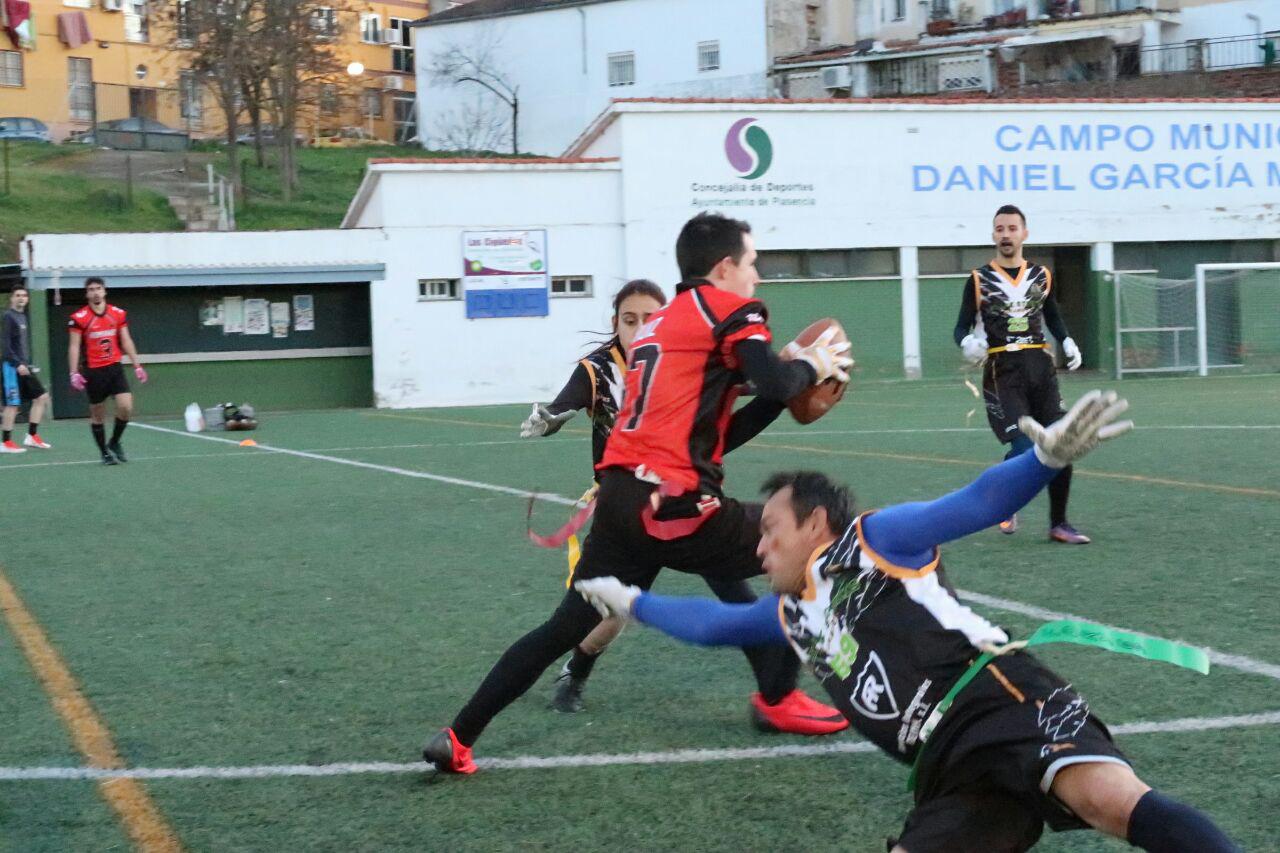 Con dos derrotas hemos iniciado la II Liga de Flag Football Extremeña, pero hemos sacado muchas más cosas positivas de las esperadas. Conociendo nuestra limitaciones en esta primera jornada celebrada en Plasencia, cumplimos el objetivo de plantar cara en ambos partidos y luchar hasta el final para tratar de mejorar los resultados de la Copa de Extremadura aún con un roster muy limitado.