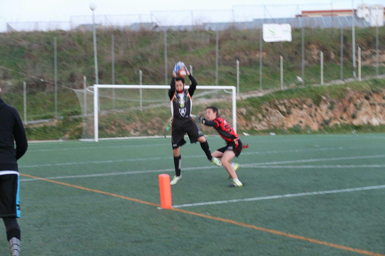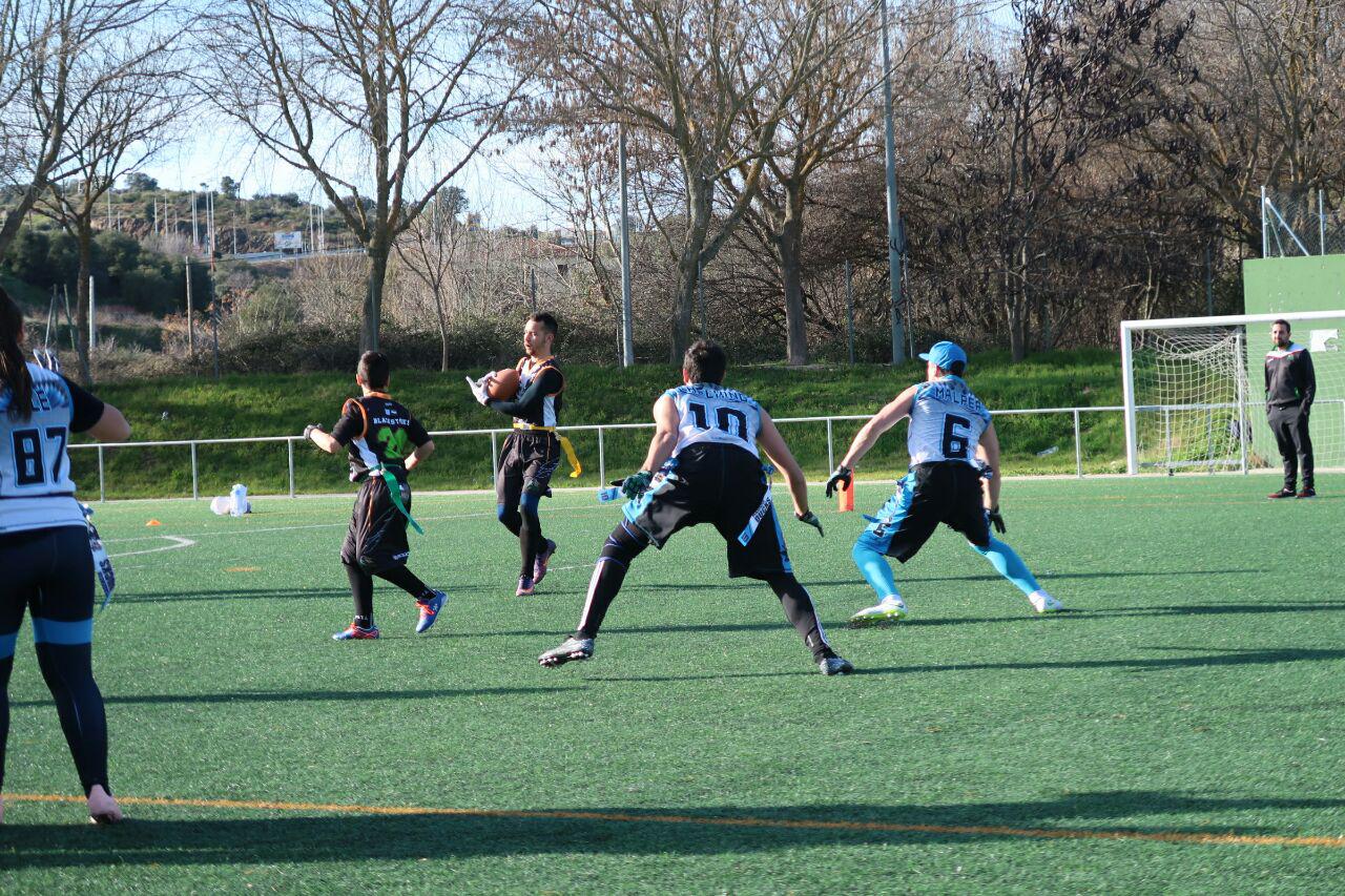 Nuestro quarterback de siempre Miguel Ángel tuvo que ser baja durante este partido y eso obligó a que Víctor Calle se estrenara en competición en dicha posición. Además, solo contábamos con 5 efectivos más, teniendo que jugar tanto en ataque como en defensa constantemente casi todos los jugadores, excepto Pablo Durán que ejerció como center fijo.