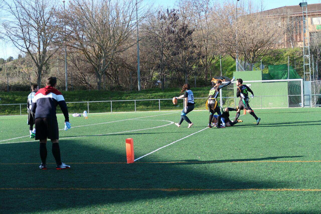 Aún así, “Fory“, Mireia, Alex, Juanjo y Víctor mantuvieron la compostura en defensa como pudieron y solo permitieron al ataque explosivo de Ducks dos anotaciones en cada parte, finalizando el encuentro 26-2 en contra. Los dos puntos los consiguió Juanjo como blitzer, alcanzando a Víctor Martín, el QB de Ducks, y realizando sack dentro de la endzone, lo que se convierte en un safety.