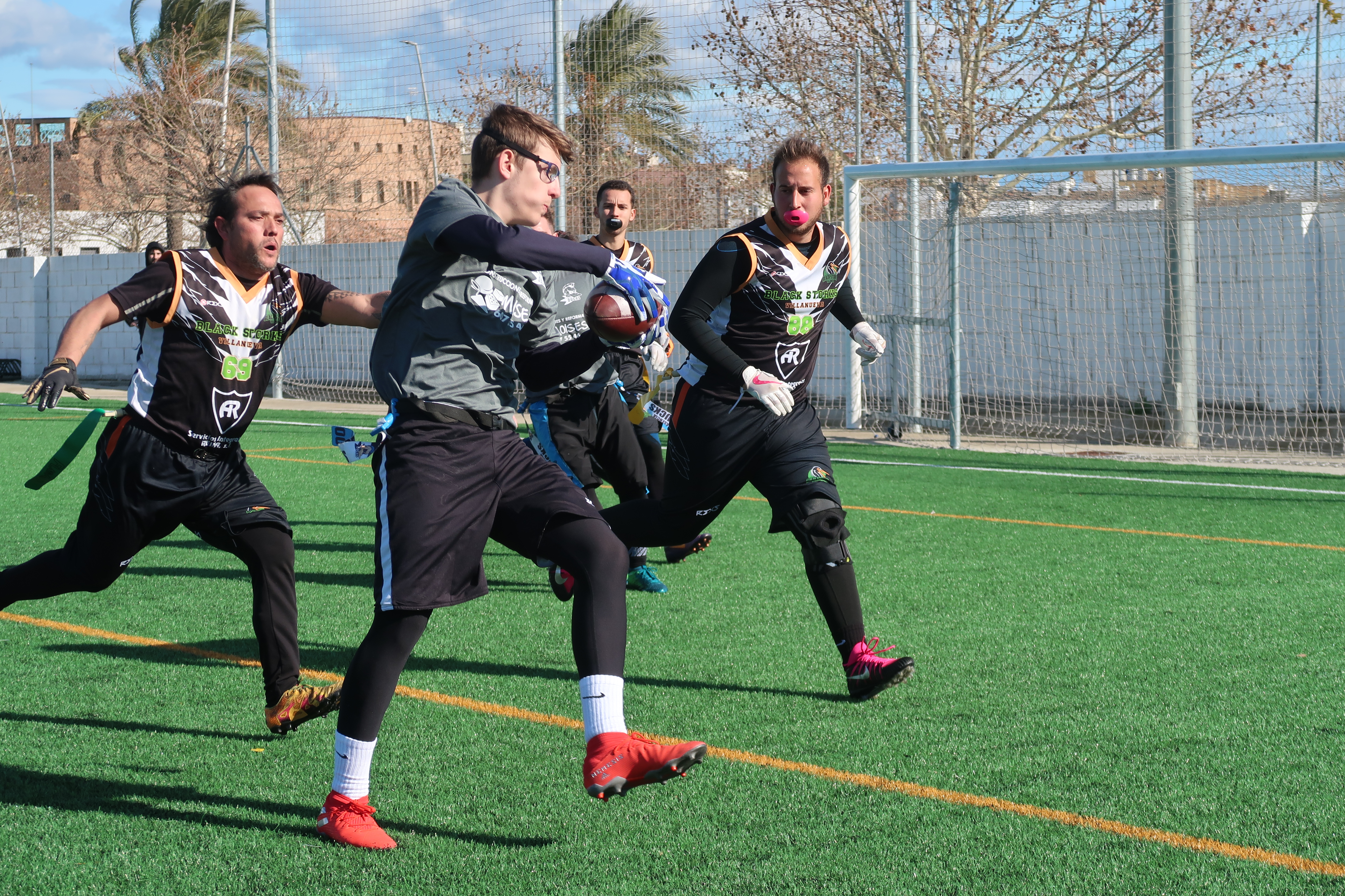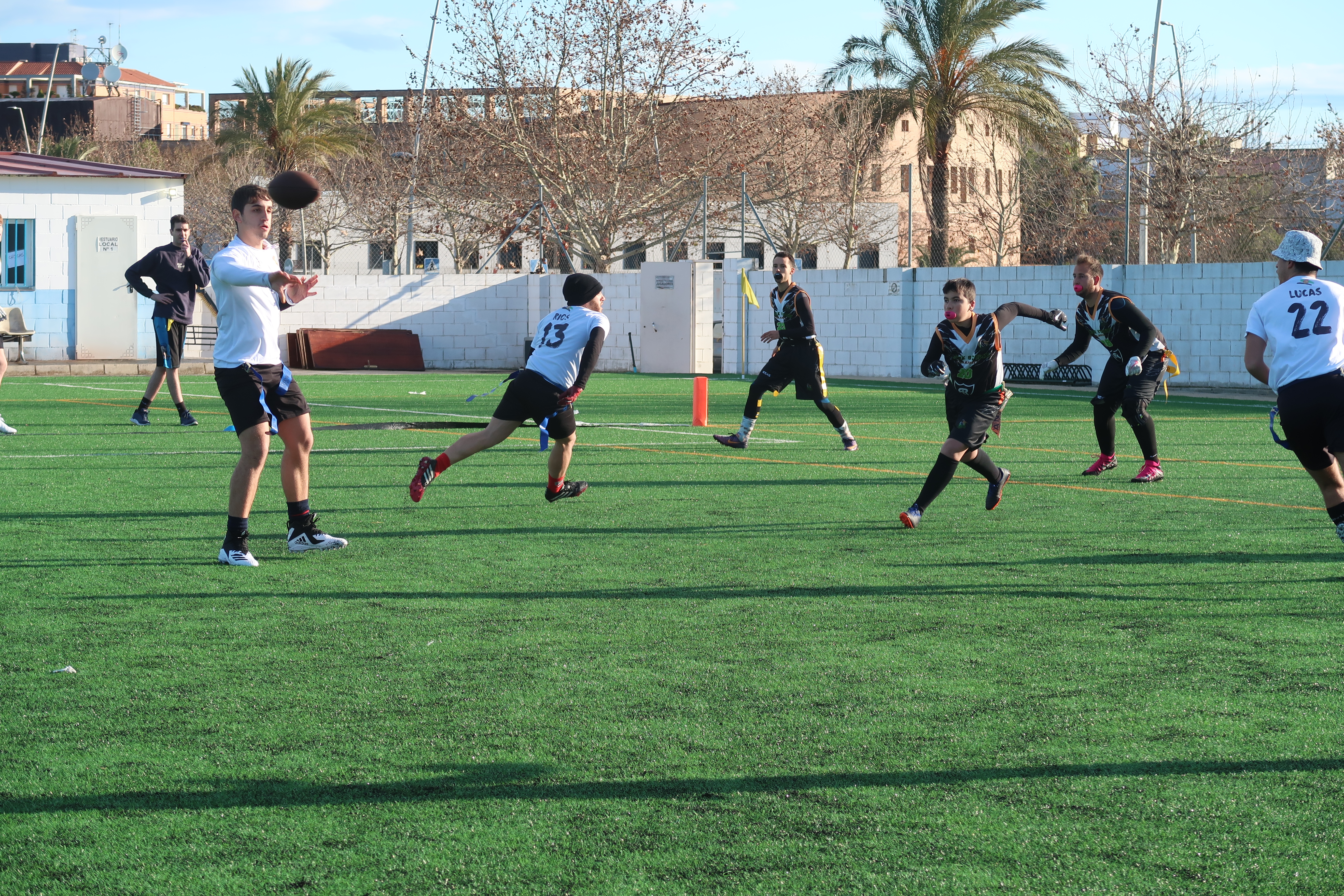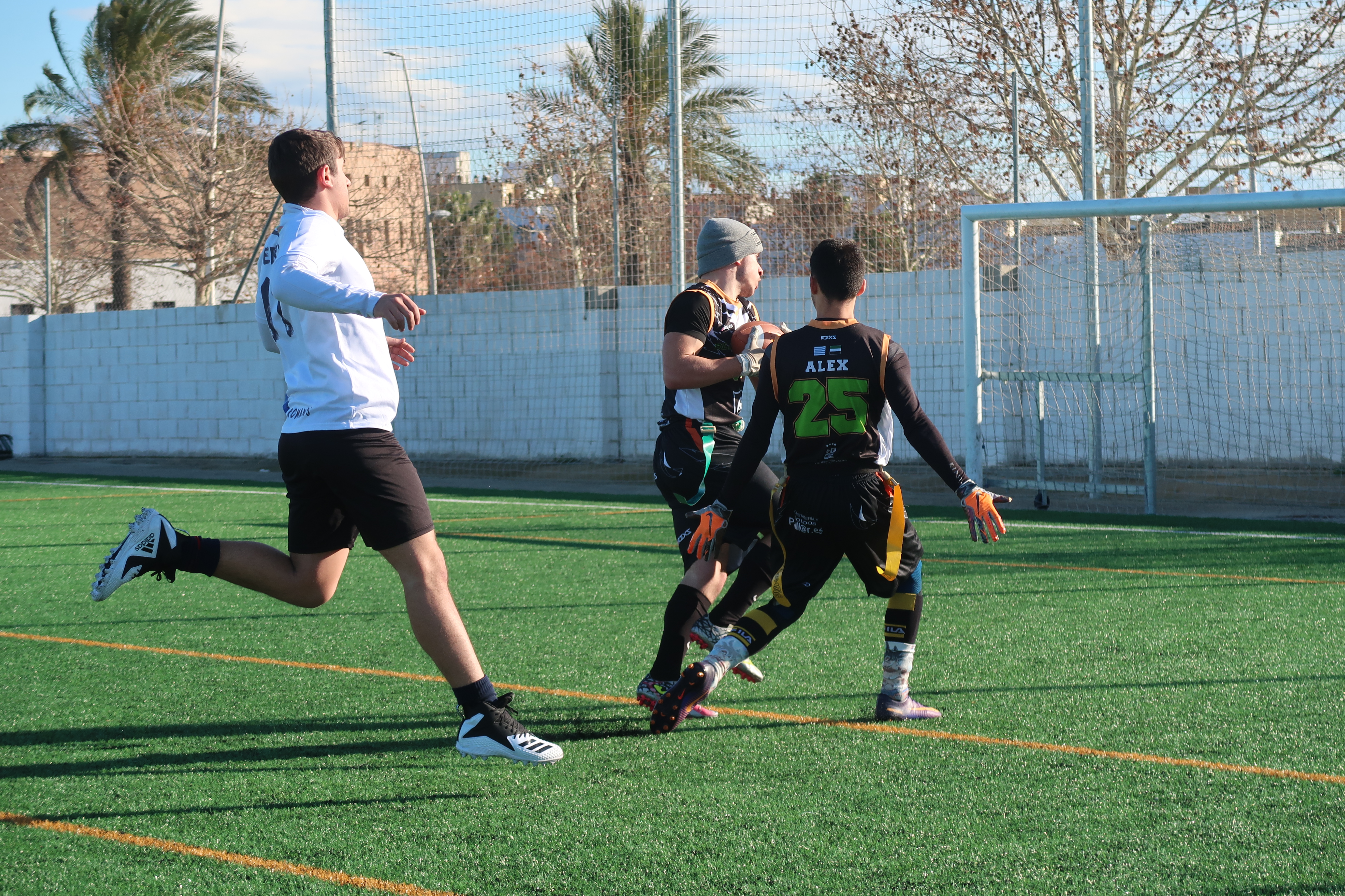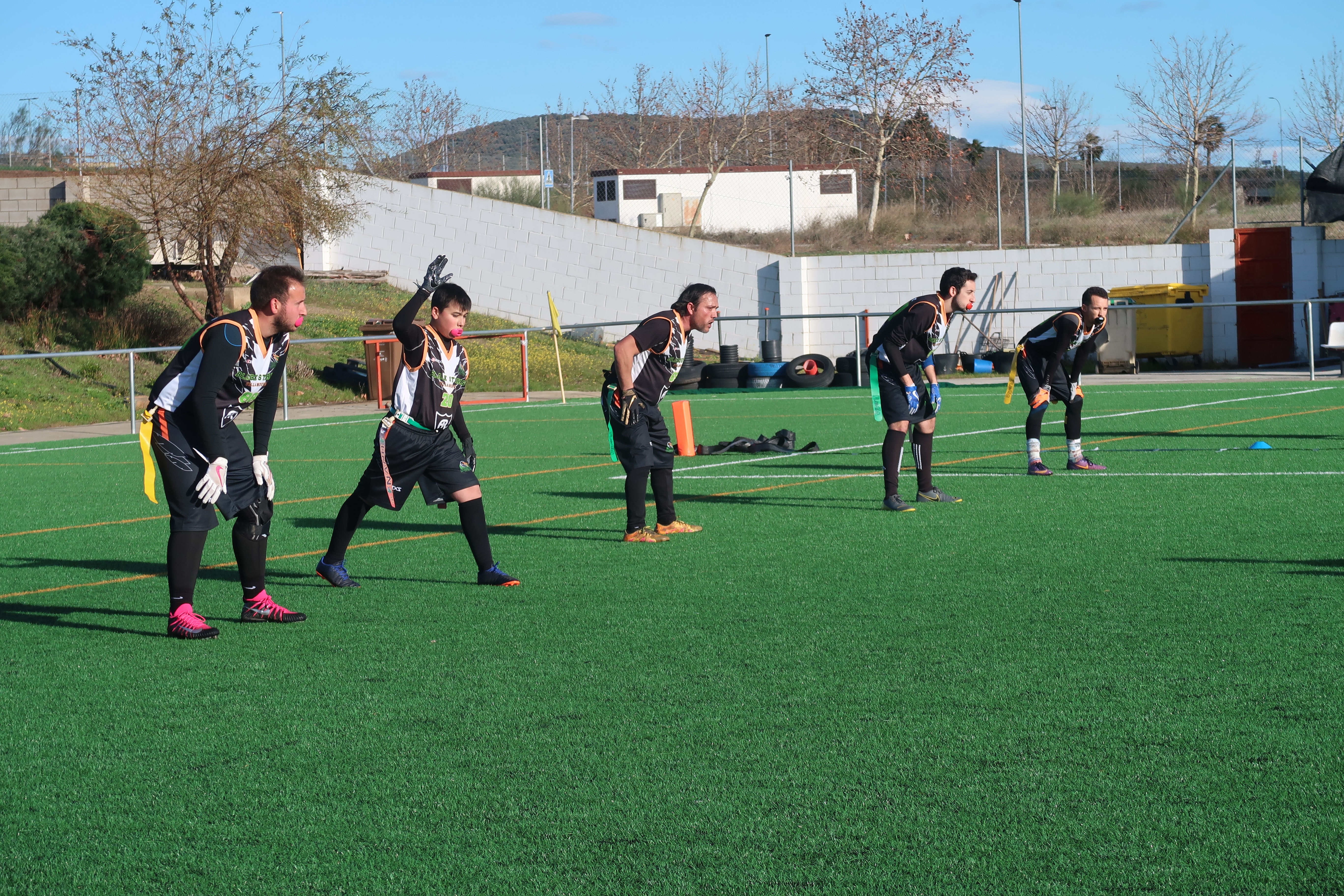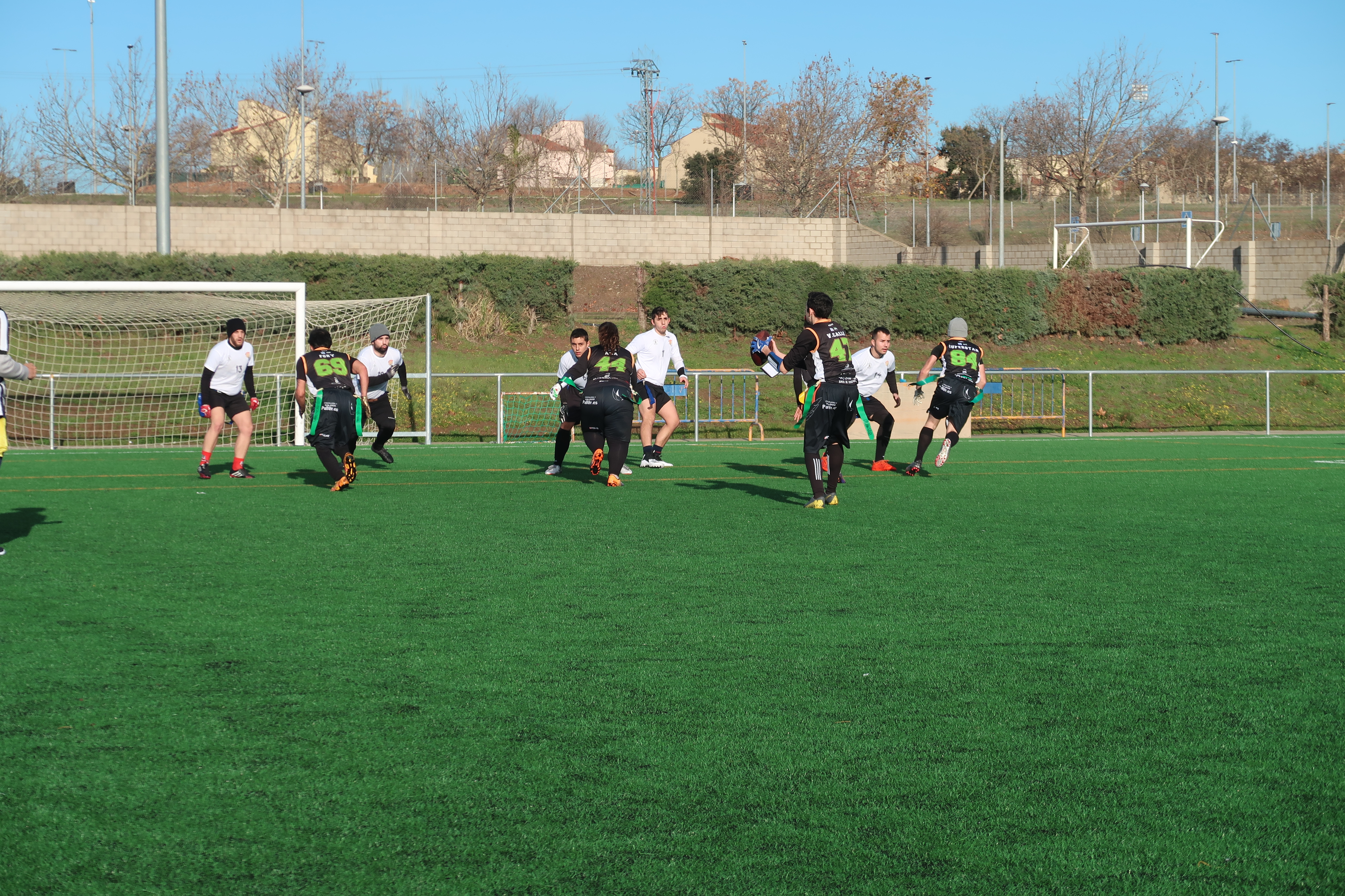 En la segunda parte no soltaron el acelerador y añadieron tres anotaciones más. En este encuentro hicimos varios ajustes defensivos y probamos diferentes combinaciones de cara a la III LFFE que empezará en febrero. Lo único positivo fue que llegamos a la endzone en una ocasión, de nuevo gracias a Alejandro Márquez. Víctor Calle, como blitz, consiguió dos sacks.
