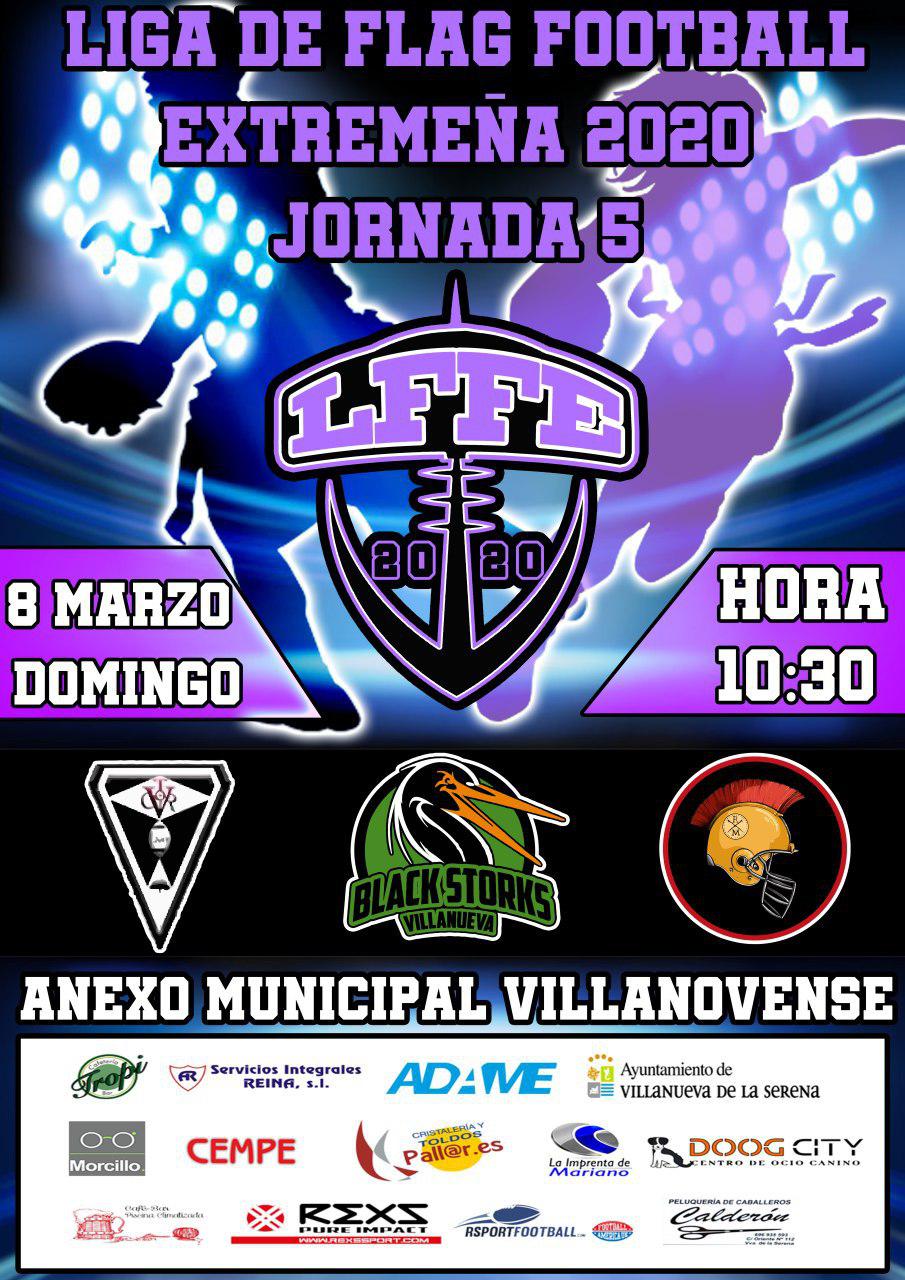 Este domingo 8 de marzo en casa, en Villanueva de la Serena, se alcanzará el ecuador de la Liga de Flag Football Extremeña 2020. Disputaremos la quinta jornada de las 10 estipuladas, con Romanos y Salamanca Vitors. Además es un día muy especial, el día de la mujer.