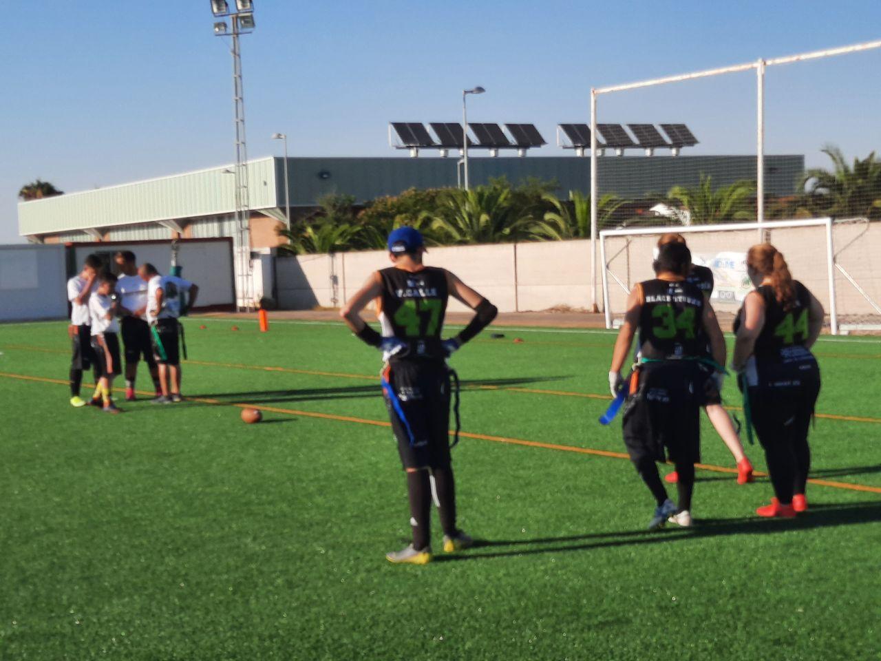 Jugando en el formato Flag Football Indoor, la jornada estuvo emocionante e intensa hasta el final. Y el primero fue un duelo de tú a tú, al menos durante la primera parte. A cada anotación de Raptors los Cam Panthers encontraban respuesta, de forma que se llegó al descanso en empate a 12.
