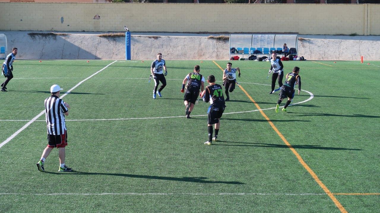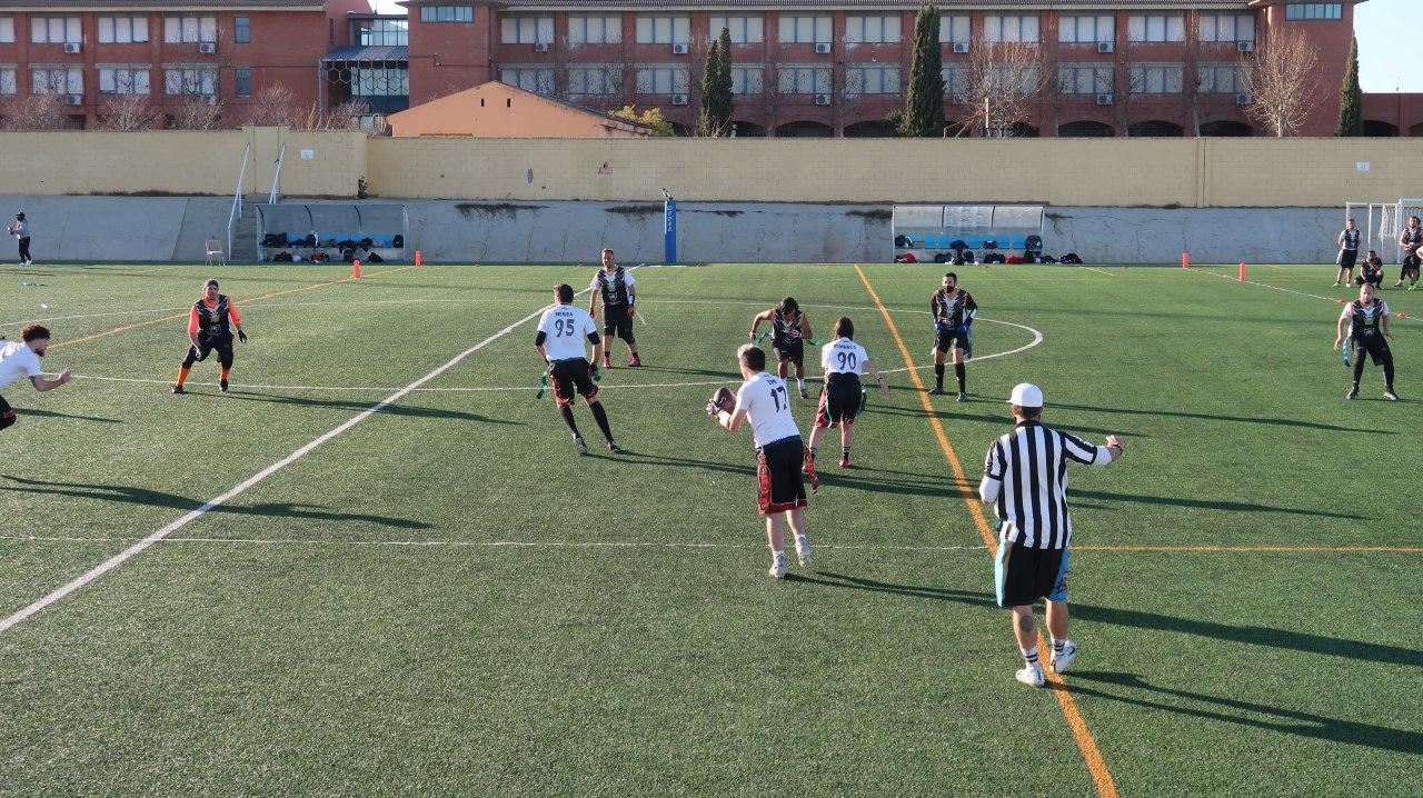 Teníamos un roster muy amplio en esta jornada (14 jugadores, récord en nuestra breve historia), y nos daba muchos relevos en ataque (Pablo “Fory”, Miguel Ángel, Juan Gallego, Alfonso Ruiz, Fátima Vargas, Ana Carmona, Alfonso Ruiz, Lorenzo Arroyo, entre otros). Pero en defensa no. La falta de práctica por parte de muchos sobre el nuevo sistema defensivo obligó a defender a los cuatro mismos defensive backs de siempre (Dani Casado, Juan “Baru”, Víctor y David), solo alternándose la posición de blitzer entre Juan Gallego, Álex León y Alfonso Ruiz. Y eso lo íbamos a pagar caro en el segundo partido que además le jugábamos de seguido, sin descanso.