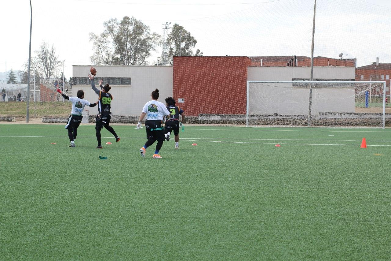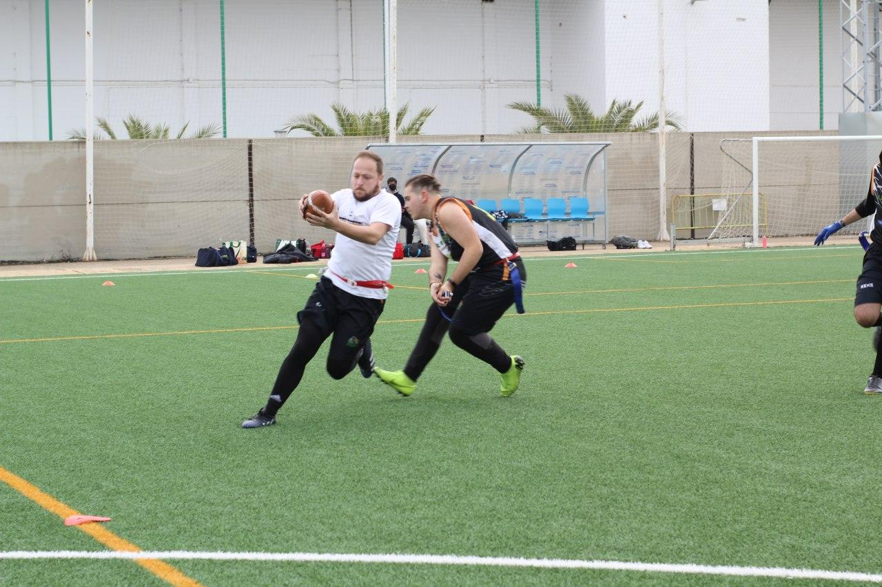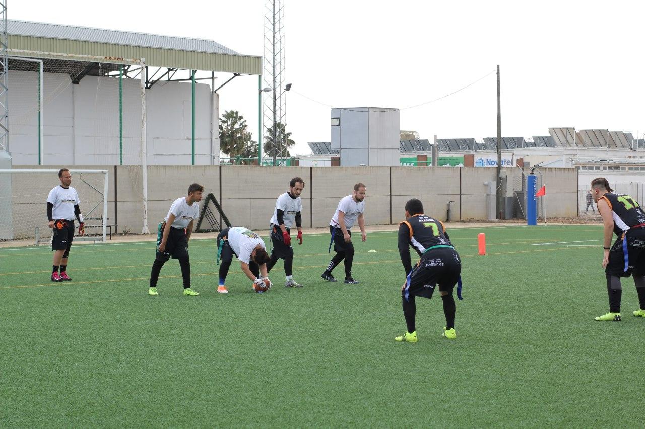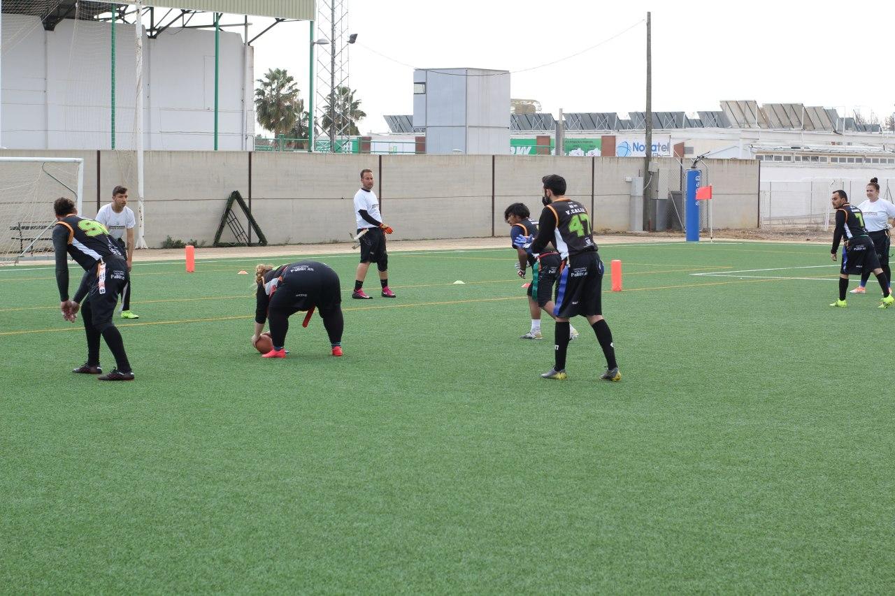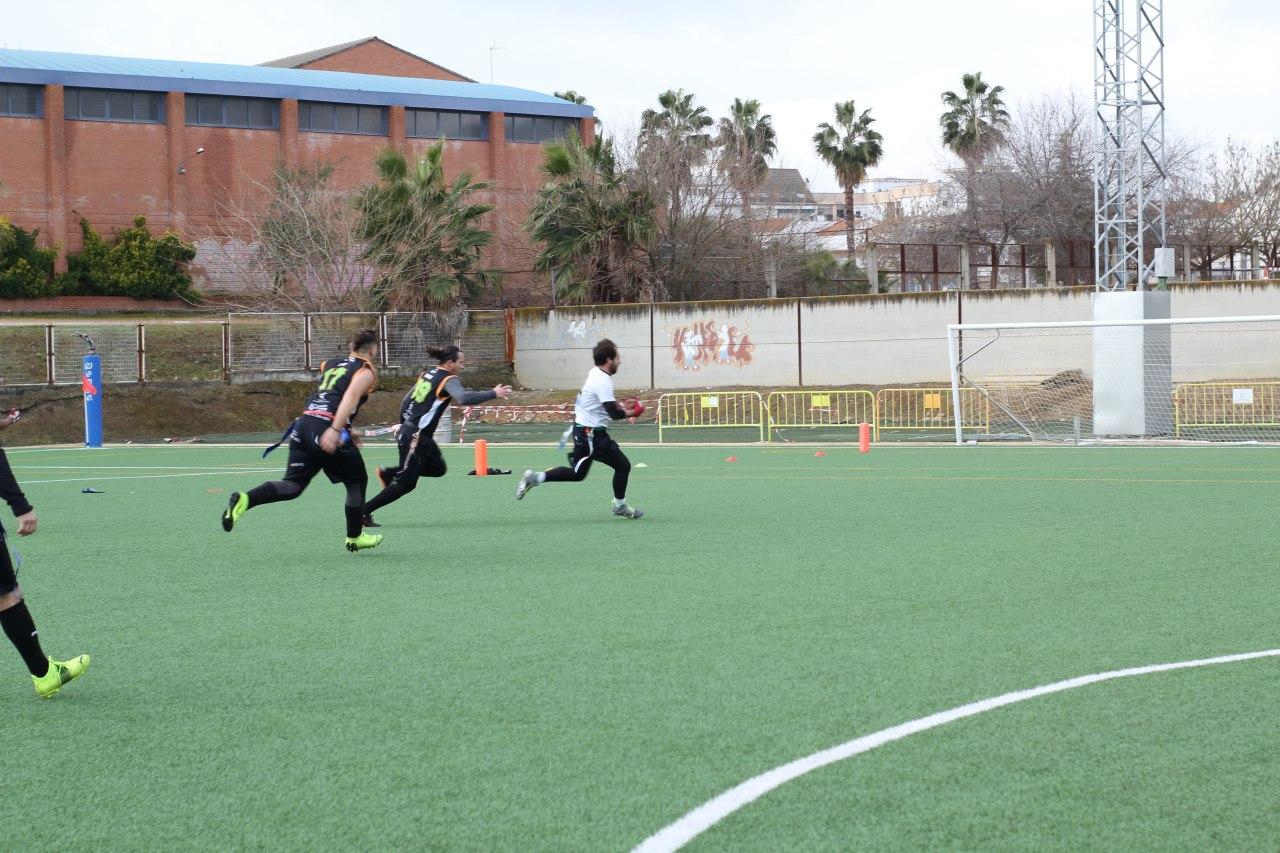 El equipo de Víctor Calle empezó muy fuerte en ataque logrando un rápido touchdown profundo por medio de Alonso Mendoza, y poniendo el joven Juan Gallego el punto extra. Acto seguido, su defensor Juan “Baru” lograba una intercepción que facilitaba una buena posición de campo a la ofensiva, y no fallaron. Anotación por parte de Ana Carmona con una nueva conversión de Juan Gallego. Raptors se ponía así con un 14-0 en un abrir y cerrar de ojos.