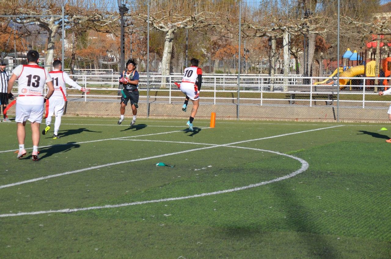 Más adelante, nuestra ofensiva se movió hasta muy cerca de la endzone rival, y nuevamente Víctor conectaba con “JuanG” para conseguir su segunda anotación y ajustar al 13-12 con lo que se llegó al descanso.