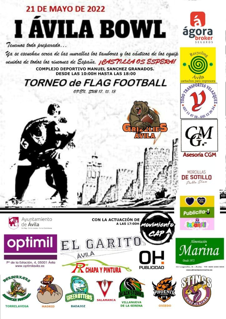 El club amigo Ávila Grizzlies se estrena organizando torneos y alberga la primera edición de la Ávila Bowl, una competición para fomentar el Flag Football y promocionarlo a nivel nacional. Por ello, presentan competición para casi todas las categorías posibles: alevín U13, infantil U15, cadete U17 y Open.