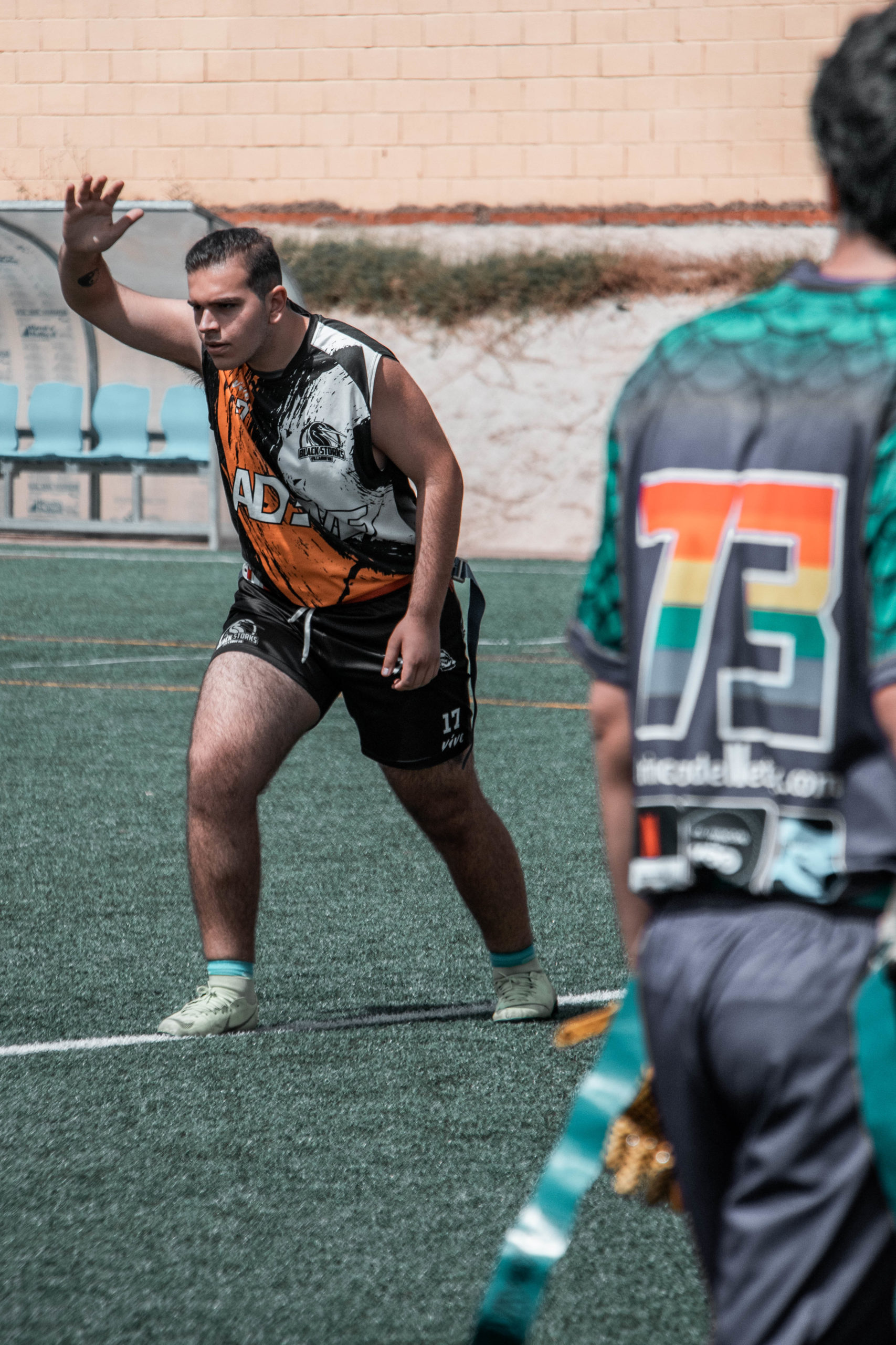 En el siguiente encuentro de nuestro equipo esperaba Cavaliers. Un rival factible pero que aprovechó el muy mal inicio de nuestro equipo para ponerse dos anotaciones arriba, con dos touchdowns profundos para el 14-0. Además, nos interceptaron en un par de ocasiones, en dos drives que tenían buena pinta para finalizar en puntos, de hecho una de ellas fue en la endzone. Y, para colmo, Black Storks iba a sumar una buena intercepción por medio de Emilio Gallego, quien más tarde se lesionaba en un pie y tenía que abandonar ya esta Extreflag.