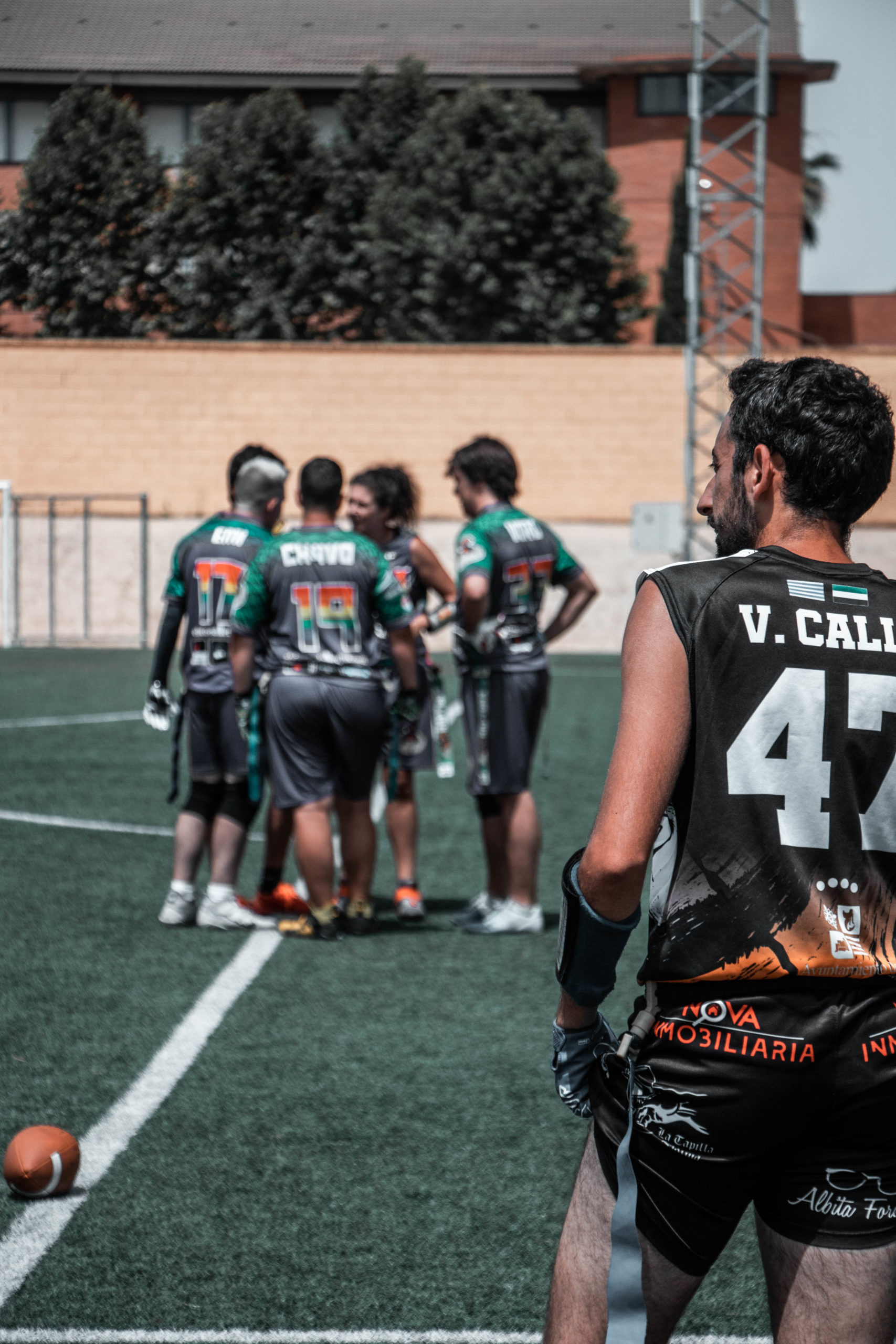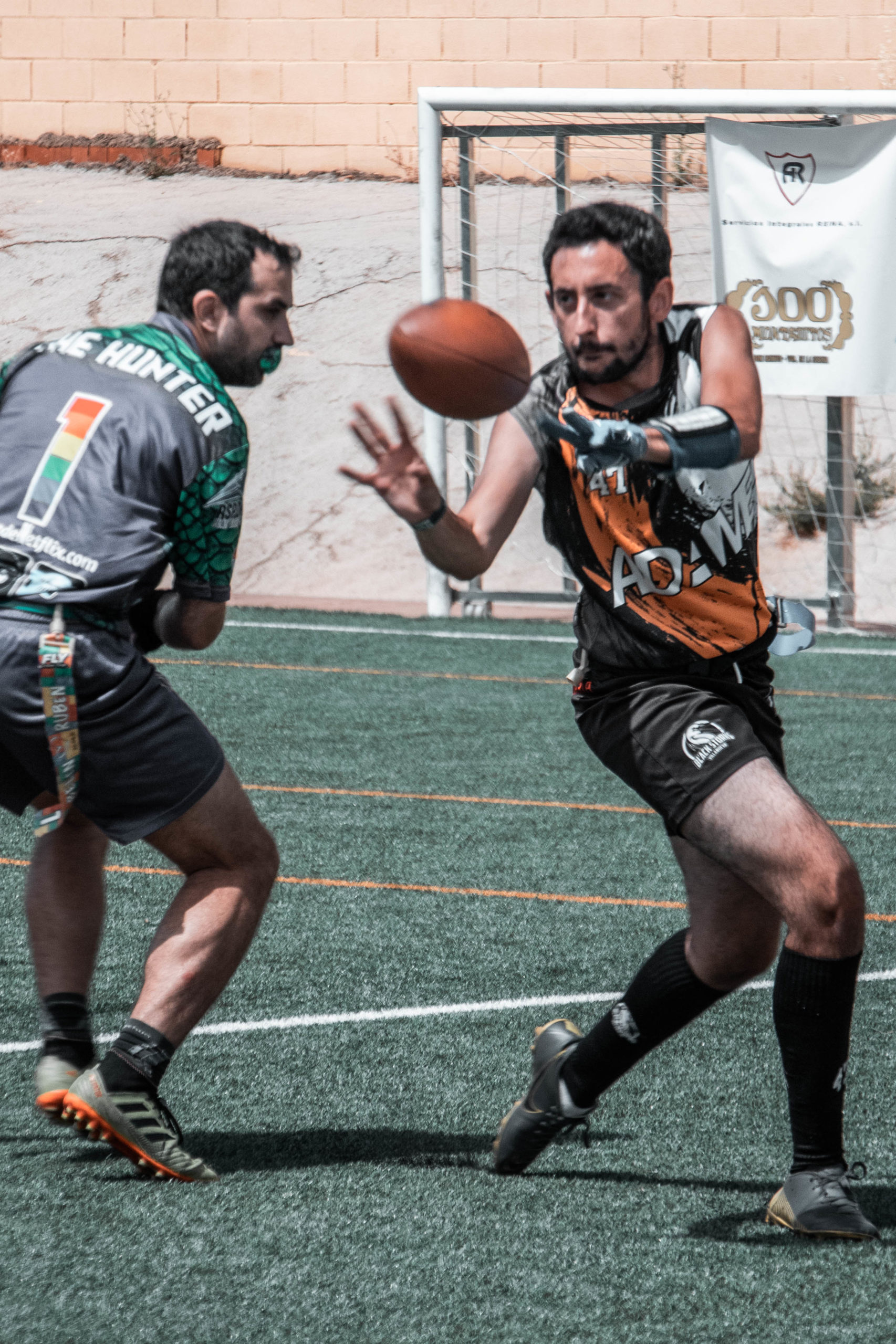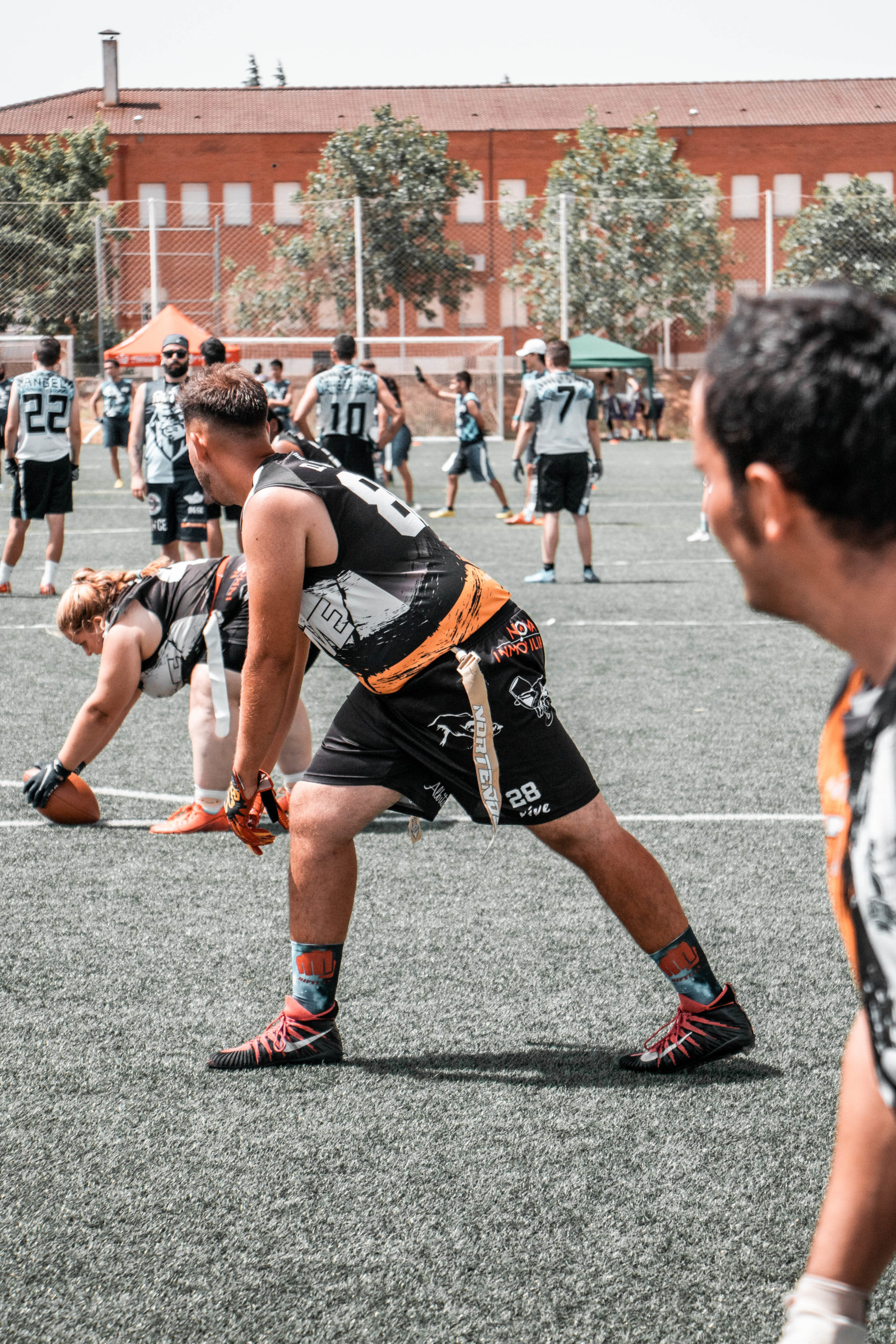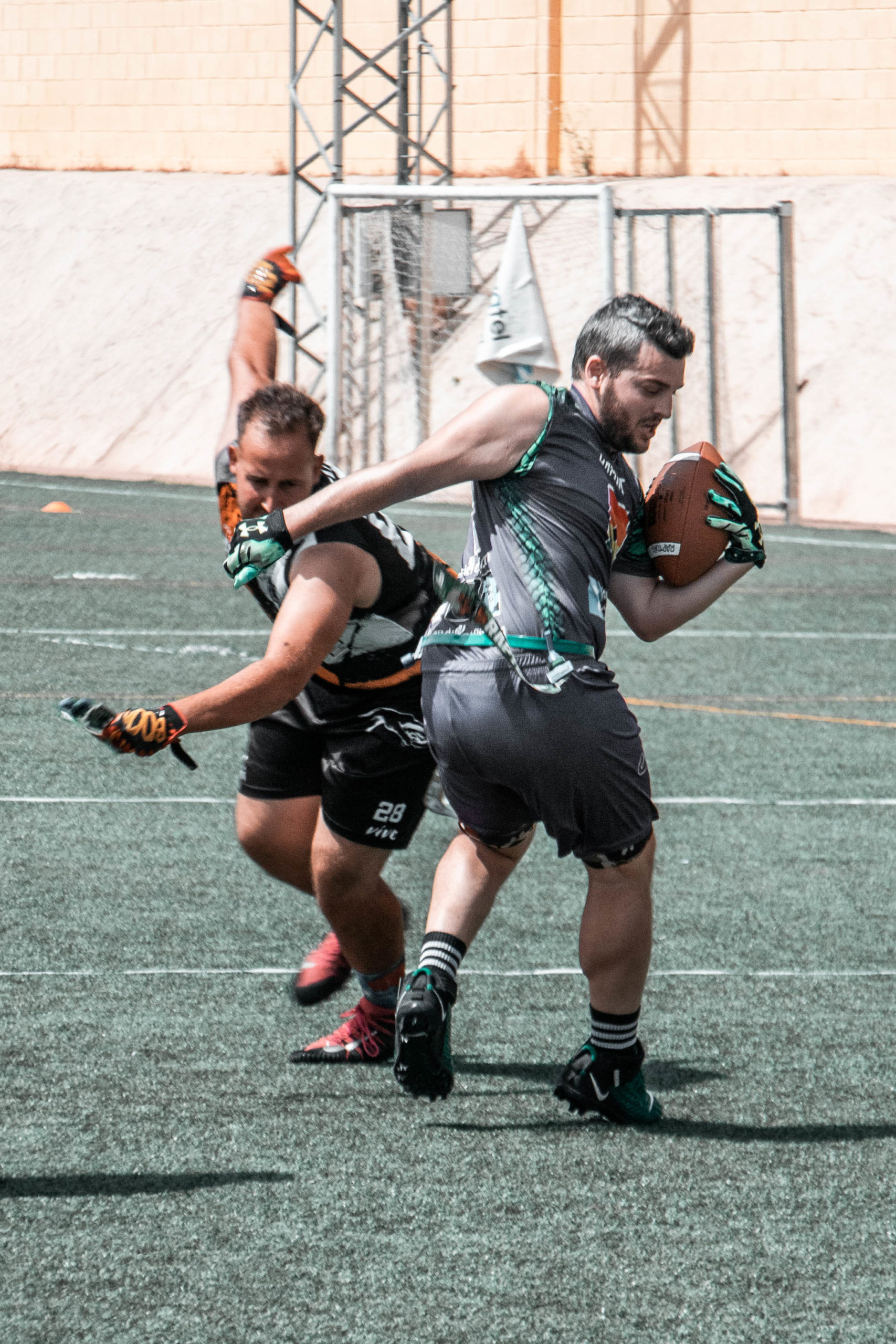 Pero se iban a topar con nuestra gran defensa que a partir de la tarde estaría exultante. La gran culpable de que acabáramos llevándonos la novena plaza. Y eso que Víctor Calle, líder de la defensa desde hace varias temporadas, solo pudo jugar como QB por molestias y lo sustituyó a la perfección el joven linebacker Álex León. Dani Casado como cornerback no permitió prácticamente ni una sola recepción profunda, mientras que Alonso Mendoza y David Capilla se complementaron a la perfección, llegando a interceptar hasta en cuatro ocasiones entre ambos. Y en ataque, Ana Carmona y Juan Gallego se mostraron incondicionales con sus recepciones junto a sus compañeros más veteranos, como David y Alonso.