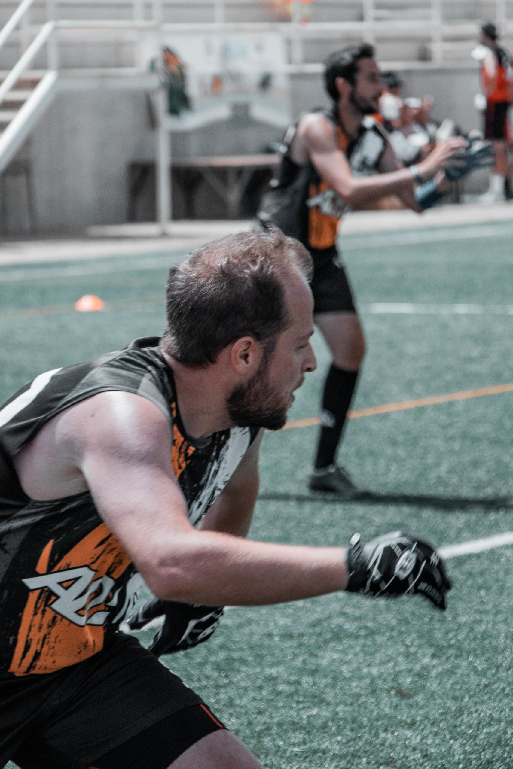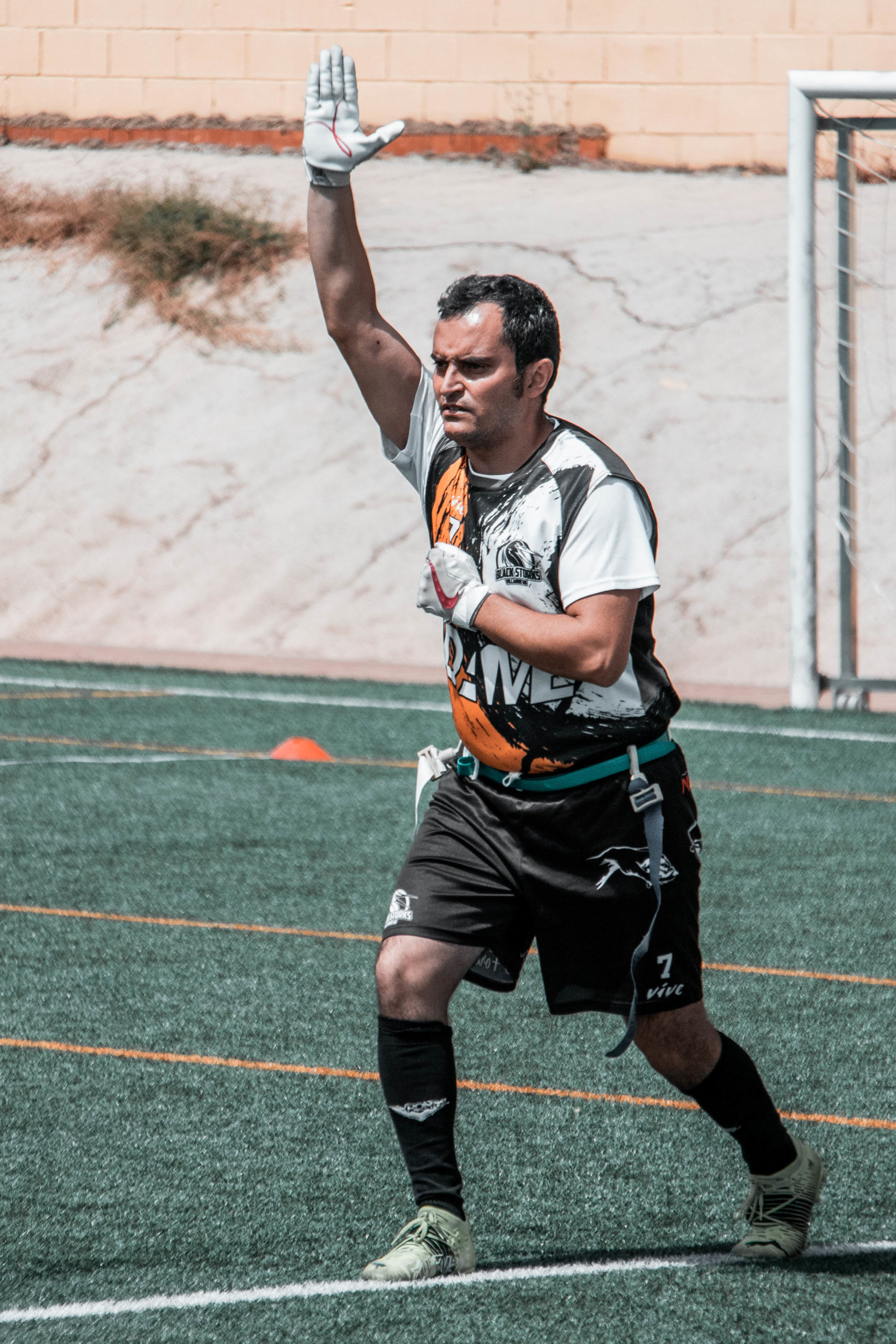 La jugada decisiva llegaría en los últimos segundos de la primera parte, cuando Monsters quedó encajado en un cuarto down largo donde realizaron una jugada de doble pase adentrados en su endzone. Nuestra presión fue soberbia, tanto sobre los receptores rivales como sobre los jugadores que amenazaban el lanzamiento o la carrera. Los blitzers del fin de semana, los jóvenes y novatos Adrián Caballero y Yakira, habían presionado muy bien durante esta Extreflag, y en esta jugada era Yakira la protagonista. Se quedó con su marca y David Capilla subió a presionar al segundo QB, a quien alcanzó para realizar un sack mientras veía que no tenía opciones de pasar ni de devolver el balón al otro quarterback. Ese sack se efectuaba dentro de la endzone y nos daba un safety, dos puntos con los cuales nos fuimos por delante al descanso (2-0).