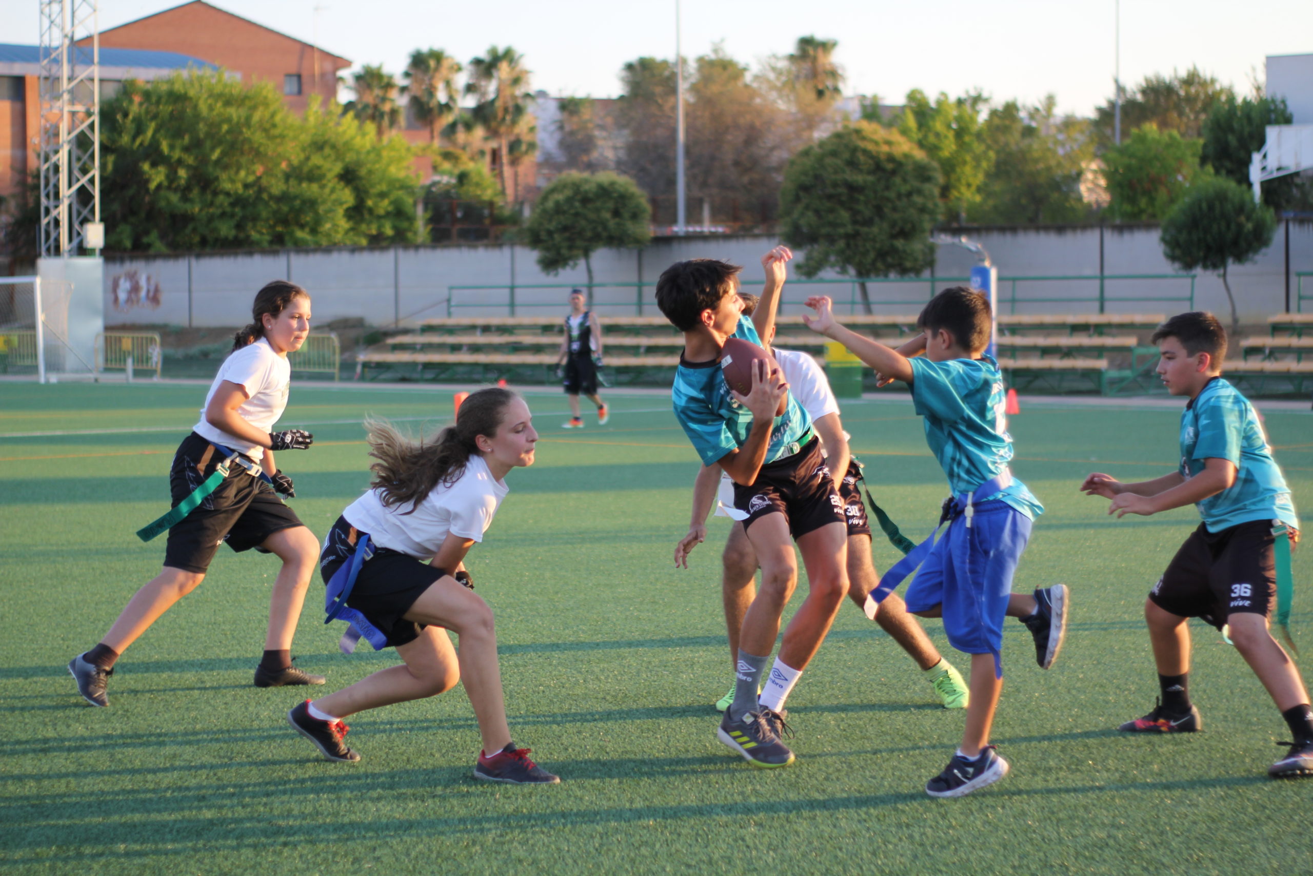 En esta edición, tuvimos el siempre divertido equipo de padres, Cigüeñas Negras, con Belén de center, Esperanza, Juan Luis, las recepciones de “Manolo” o la velocidad de Juanjo, quien acabó como máximo anotador de la Copa Villanueva con tres touchdowns (18 puntos). Brillaron las chicas del equipo de The Saviors Club de Álex León, donde su hermana Julieta se atrevió como quarterback y su prima Alba todo un descubrimiento de blitzer. Las carreras de Sara (hermana de Mar) en Wild Storks o de Álvaro (amigo de Adrián) que jugaba para Fire Eagles. O la joven Julia Carrascosa dirigiendo por primera vez como capitana, en los Diabolical Swans.