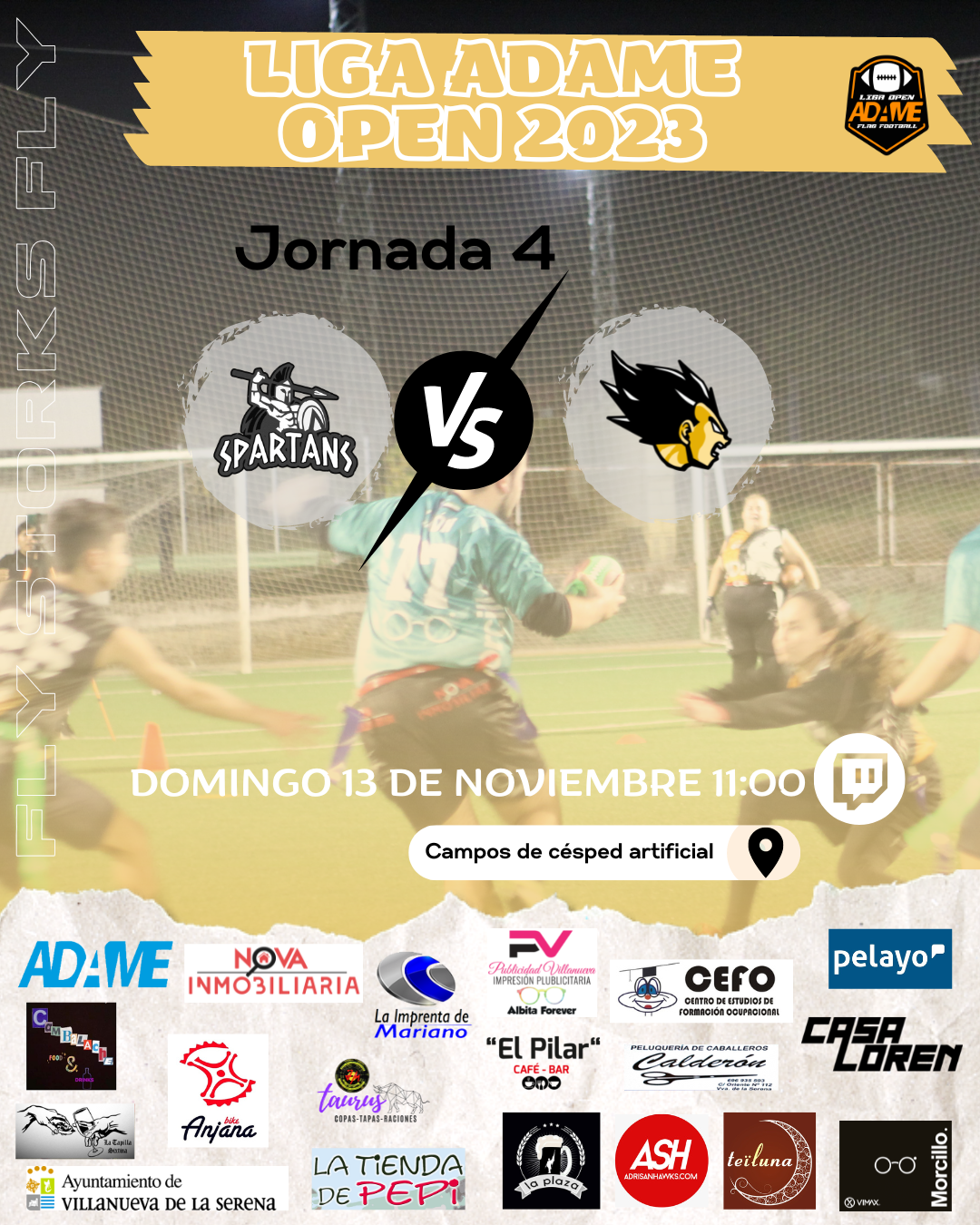 Esta V Liga ADAME Open de Flag Football entra en su segunda mitad de la temporada regular. Comienzan los partidos de vuelta con la Jornada 4, donde volverán a verse las caras Saiyans y Spartans. Será este domingo 13 de noviembre, desde las 11:00h en los campos de césped artificial.