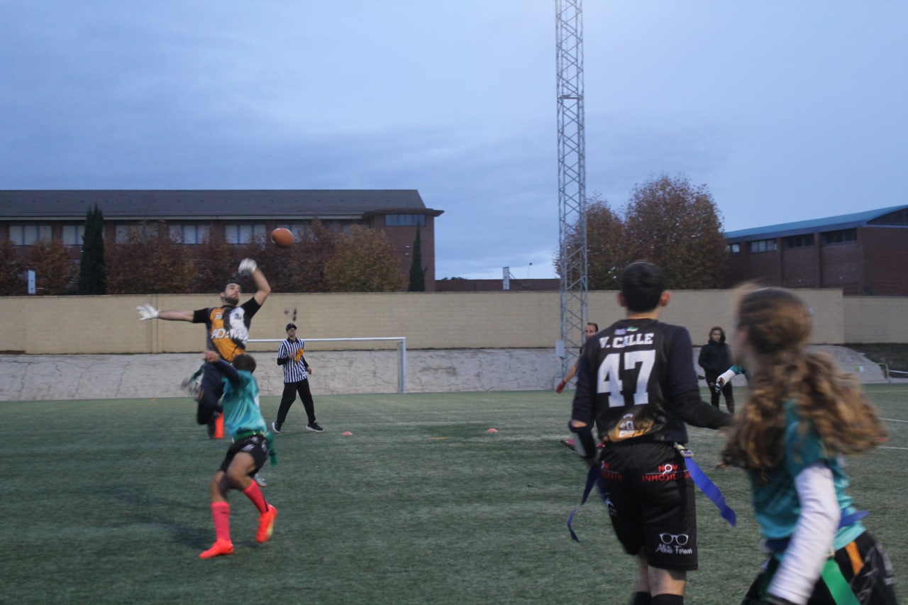De esta forma, Saiyans en su primer drive finalizaba con touchdown, corriendo Álex Pastor, y extra de “Baru”. Esta historia se repetiría en dos ocasiones más de la primera parte. Spartans, con Julieta Luque de QB, asistiendo sobre todo a Álex León y Adrián Murillo, se quedaban constantemente cerca del primer down, pero sin conseguirlo. Y Saiyans lo aprovechaba para ya irse en el marcador. Dos espectaculares touchdowns en las profundidades de la endzone conseguiría Juan Gallego, y una conversión haría Ángela, para poder irse ganando los Saiyans por 20-0 al descanso.