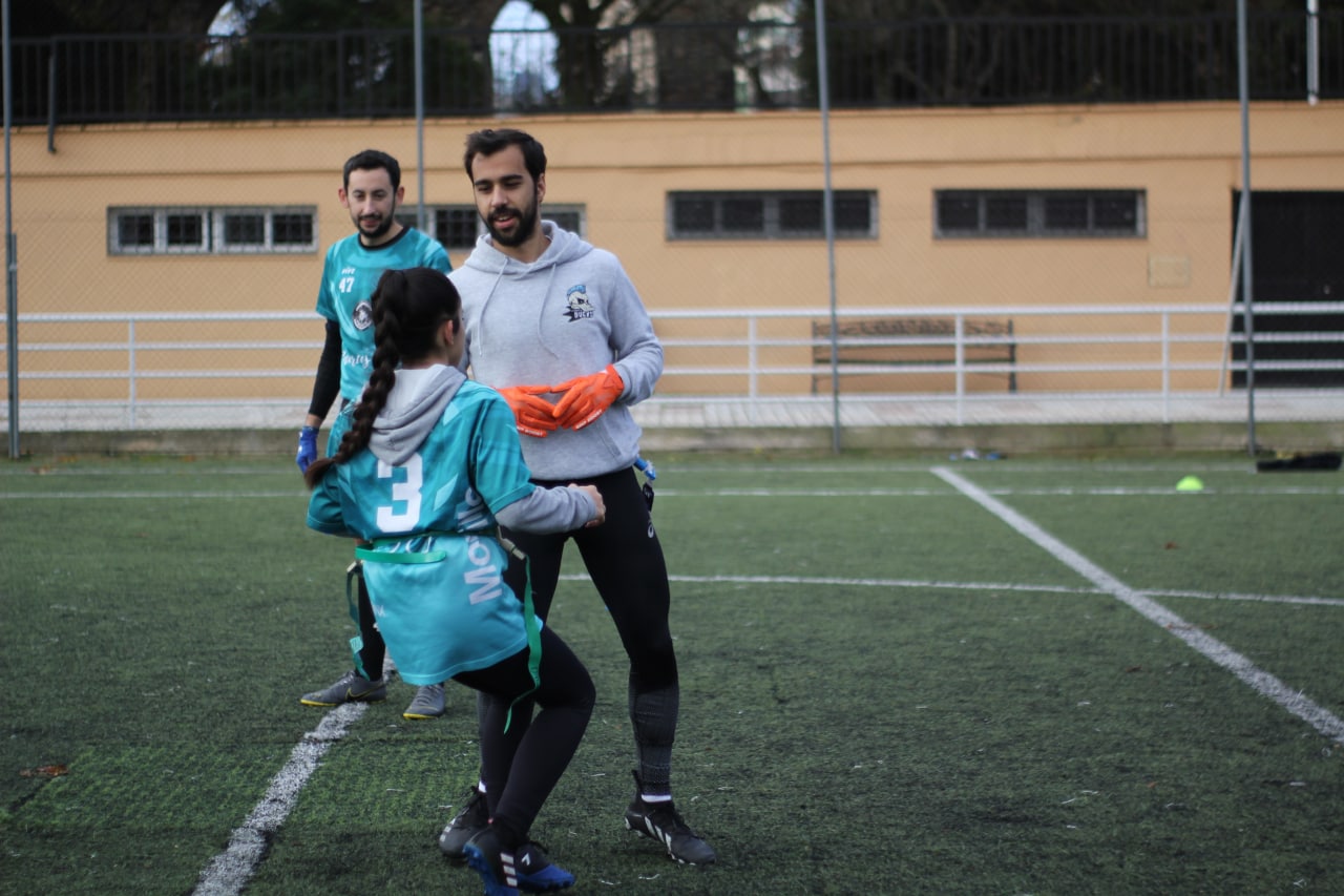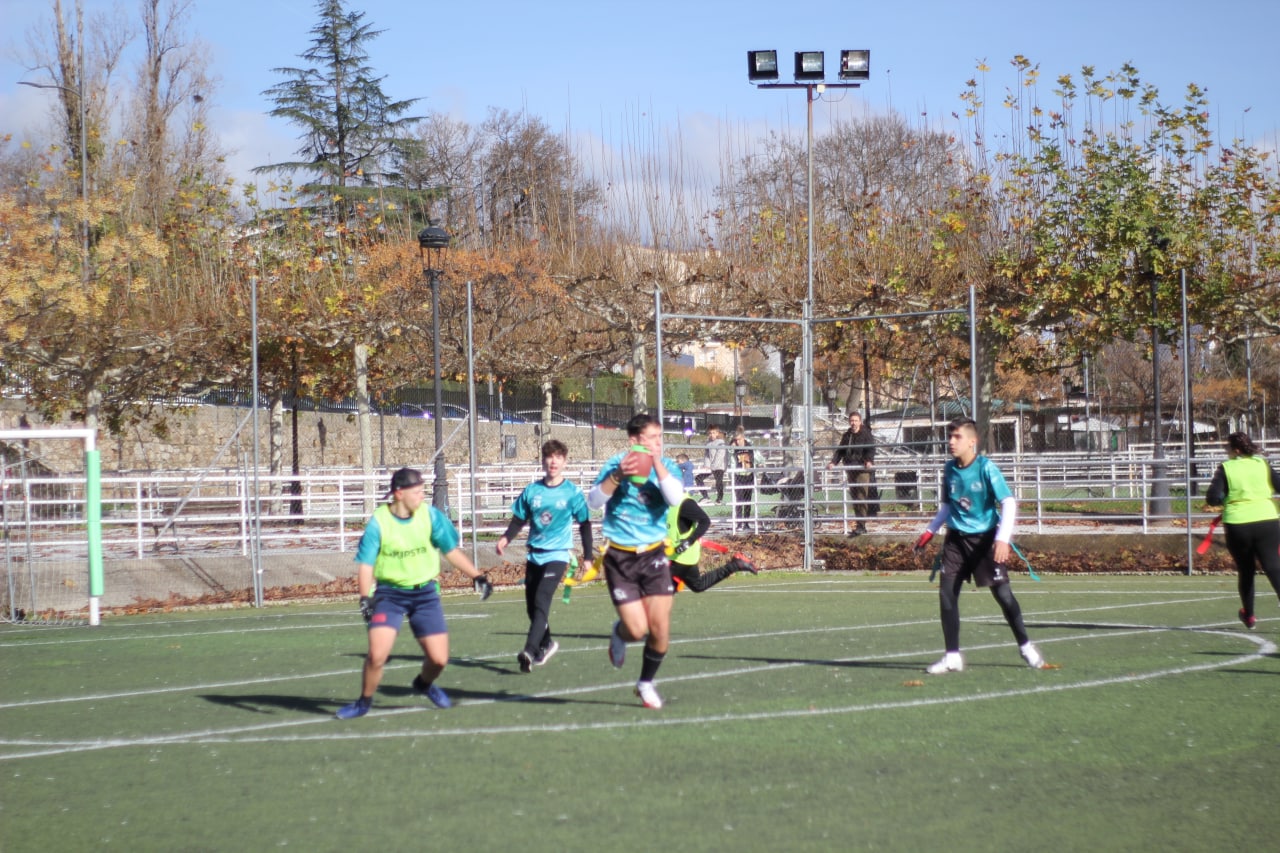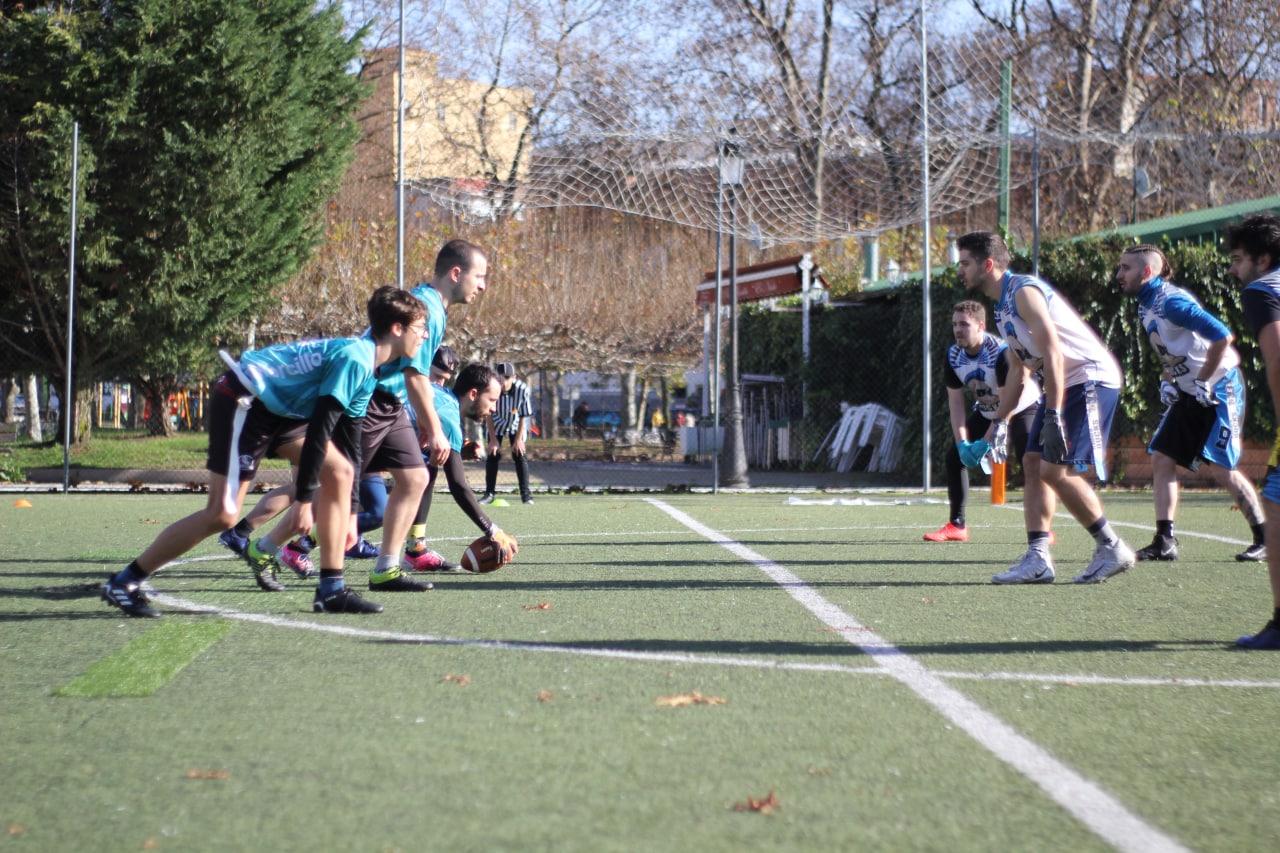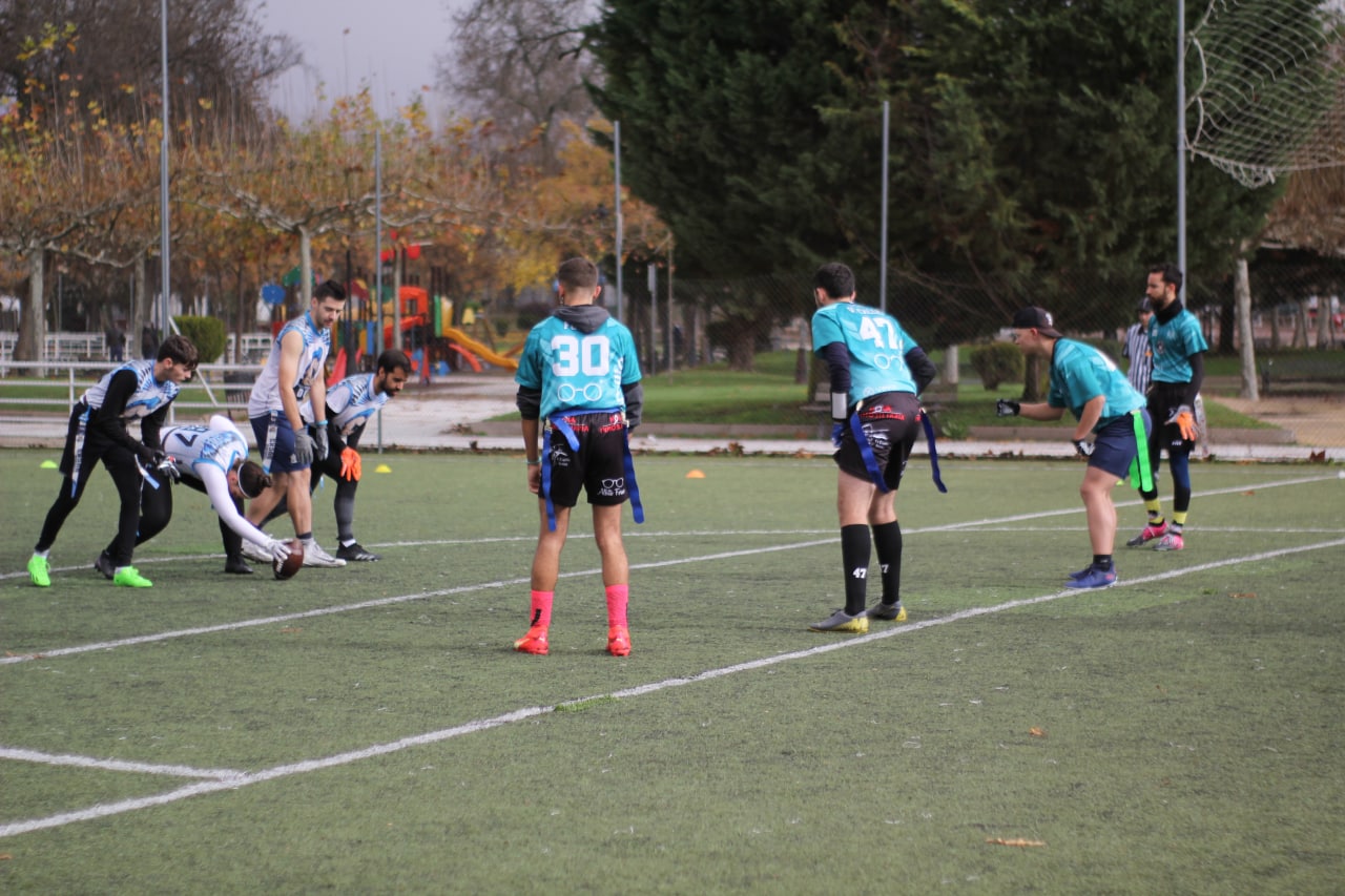 Ya en la recta final, nuestro Adrián Murillo, que se encontraba reforzando el otro equipo, puso el único touchdown de este grupo para terminar el partido completamente amistoso en un 12-8.