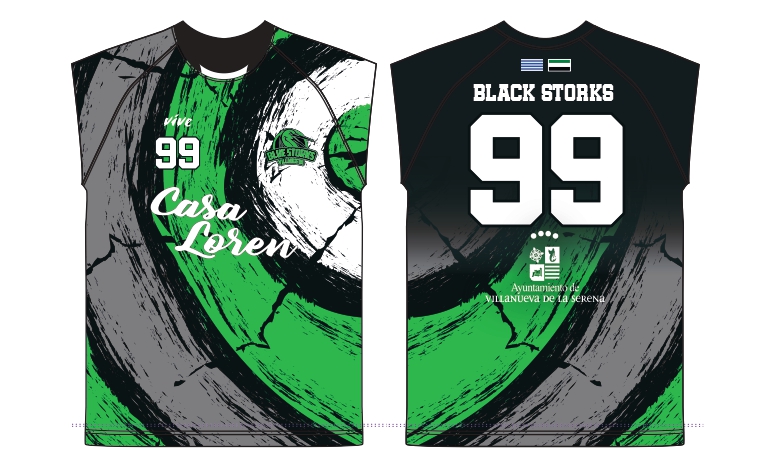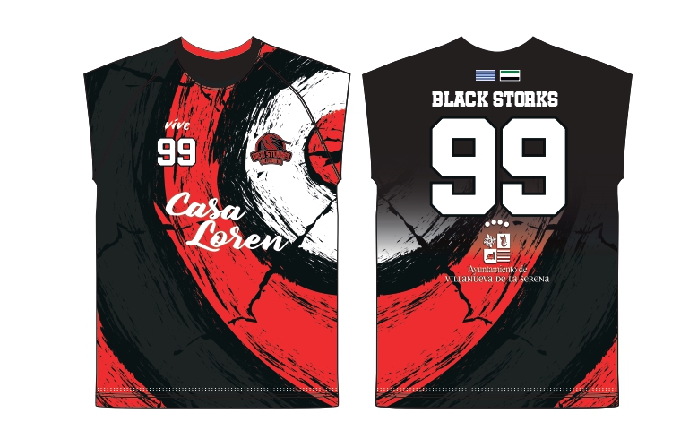 Y como novedad para este fin de semana, estaremos de estreno de ropa. La renovación de gran parte de los patrocinadores esta temporada nos lleva a rediseñar cinco temporadas después las equipaciones de todos los juveniles, de Red, Green y Blue Storks. Ahora todos llevarán la publicidad del bar Casa Loren, y tendrán el mismo diseño de las equipaciones séniors solo variando el color según el equipo. Podéis verlo en esta imagen.