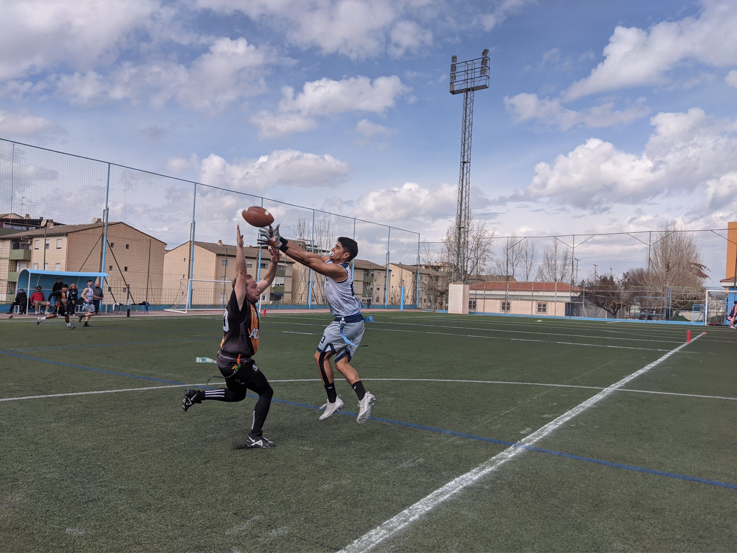 Comenzamos la mañana con un encuentro sencillamente apasionante ante los Corsairs. Los malagueños nos hicieron mucho daño con sus jugadores rápidos en profundo, y nuestro ataque tardó un par de ataques en carburar. Por ello, Corsairs supo ponerse con un 14-0 de inicio con dos touchdowns en jugadas largas, y les sirvió para tener una renta de dos anotaciones hasta el final. Aí, fuimos a remolque todo el partido, pero en ningún momento tiramos la toalla. Y surtiría efecto.