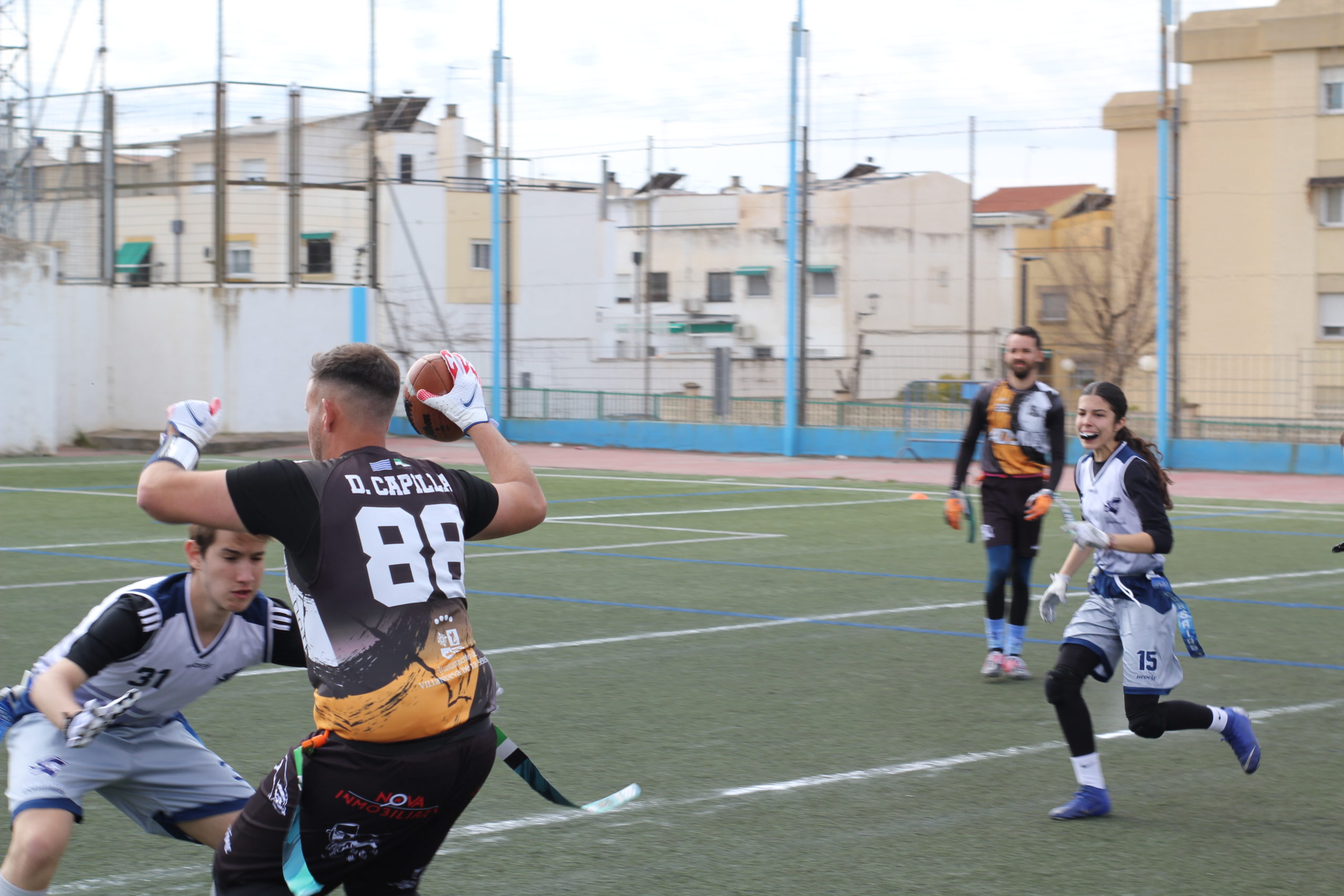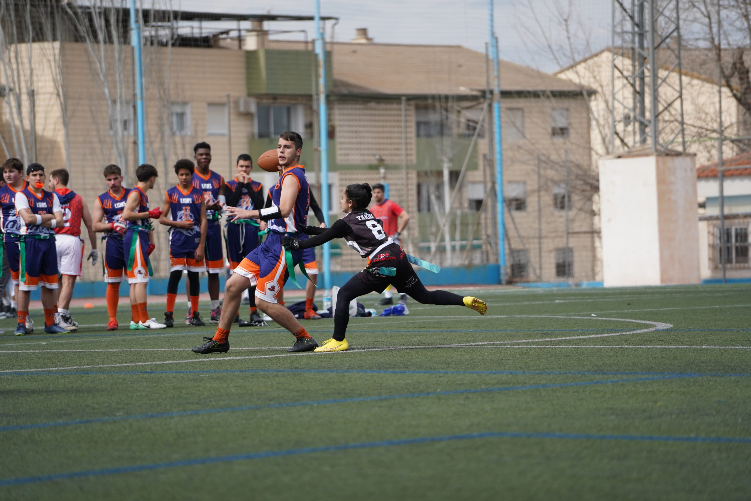 Tras esa enorme victoria ante Málaga Corsairs, nuestro equipo se encontraba exhausto y con ganas de más, de meterse en la final. Y para ello era obligatorio sumar un triunfo más, ahora ante los Maracena Lions, un grupo compuesto por jóvenes jugadores en su mayoría menores de 19 años pero que están dando muchísima guerra en su Liga Andaluza de Flag Football. Al contrario que en el anterior encuentro, en este Black Storks tomó el mando del marcador y no lo concedió en ningún momento, pero el partido se mantuvo apretado hasta la segunda parte. Comenzábamos con touchdown de Álex Pastor y extra de David Capilla. Aunque los Lions se recompusieron tras su mal inicio y dieron réplica con un buen touchdown profundo para empatar. Acto seguido, el quarterback Víctor Calle conectaba increíblemente en un pase muy profundo desde la yarda cinco con “Chiki“, y este corrió hasta la endzone para el 14-7, cuenta que se mantuvo hasta el descanso.