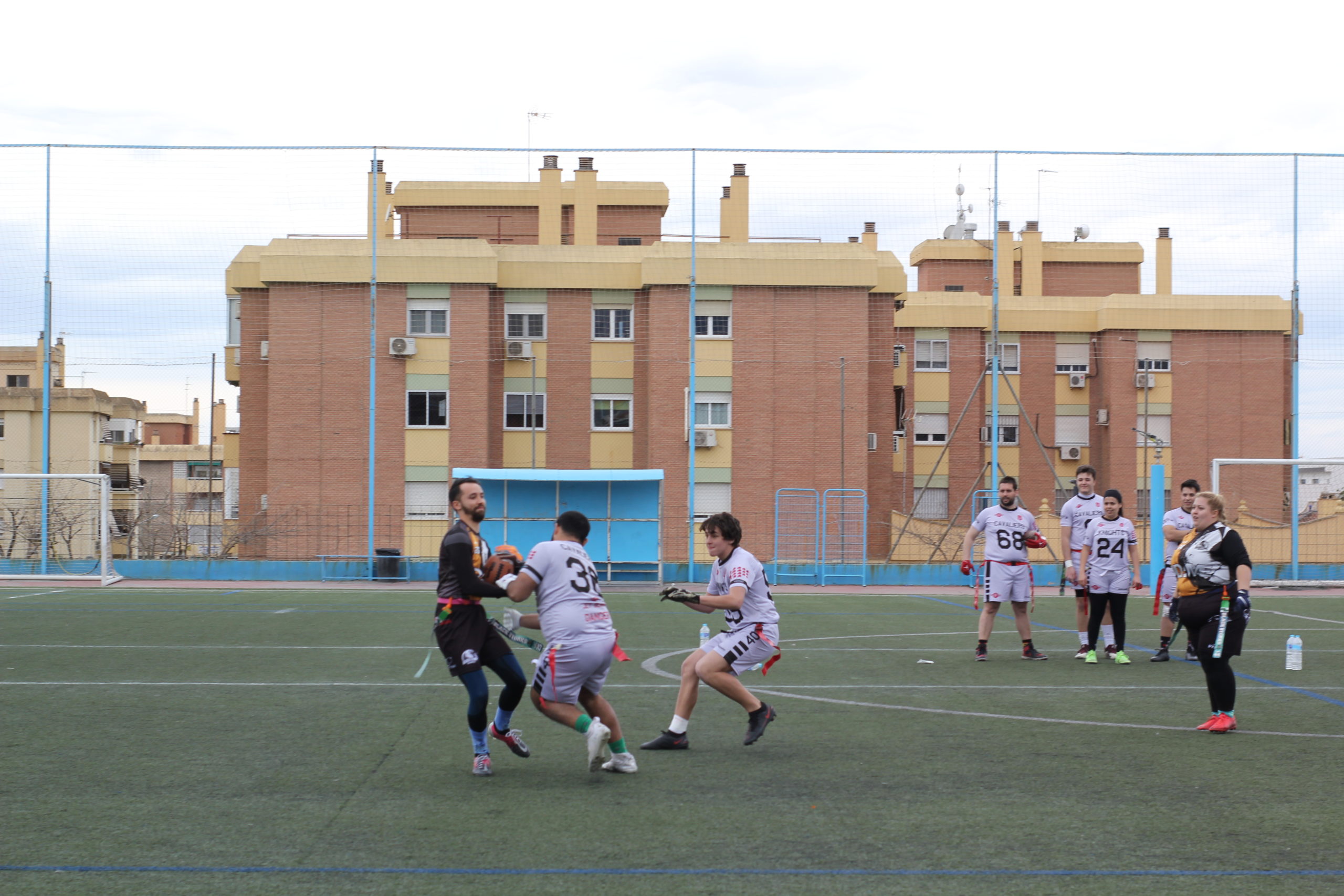 La Maracena Bowl disponía a los seis equipos divididos en dos grupos, de los cuales los líderes de cada uno clasificaban a la decisiva final. A Black Storks le tocaba arrancar enfrentándose a Málaga Corsairs y a Maracena Lions, y supimos sacar dos vibrantes victorias por 35-34 y 28-13 respectivamente, lo que nos garantizó el pase a la lucha por el título. El tercer duelo de nuestro grupo se lo llevarían los jóvenes Lions frente a Corsairs (40-37). En el otro grupo, Alcobendas Cavaliers superaba en un infartante duelo decidido en los últimos minutos por 33-28 a los granadinos de Legends of Lions, y por 35-6 a Southside Outlaws. Previamente los malagueños también habían sucumbido frente a Legends of Lions por 28-6, por lo que los de Granada finalizaban segundos de grupo y el liderato era para los madrileños. Así, nuestro equipo y Cavaliers disputaron una final que se acabaron llevando los de Alcobendas por 31-12.