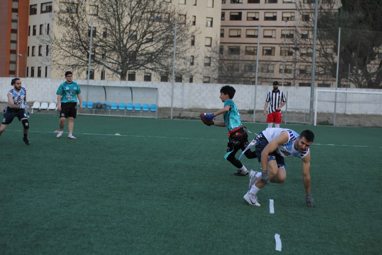 Nuestros cadetes solo pudieron presentar para este día un roster de seis jugadores, aunque lo dieron todo en ambos encuentros. En el primero, frente a Romanos, incluso comenzaron ganando y sorprendiendo a los mismos. Pase largo del QB Juan Gallego capturado por Emilio Gallego, y desde las últimas cinco yardas, el propio Emilio se encargaba del touchdown para el 6-0.