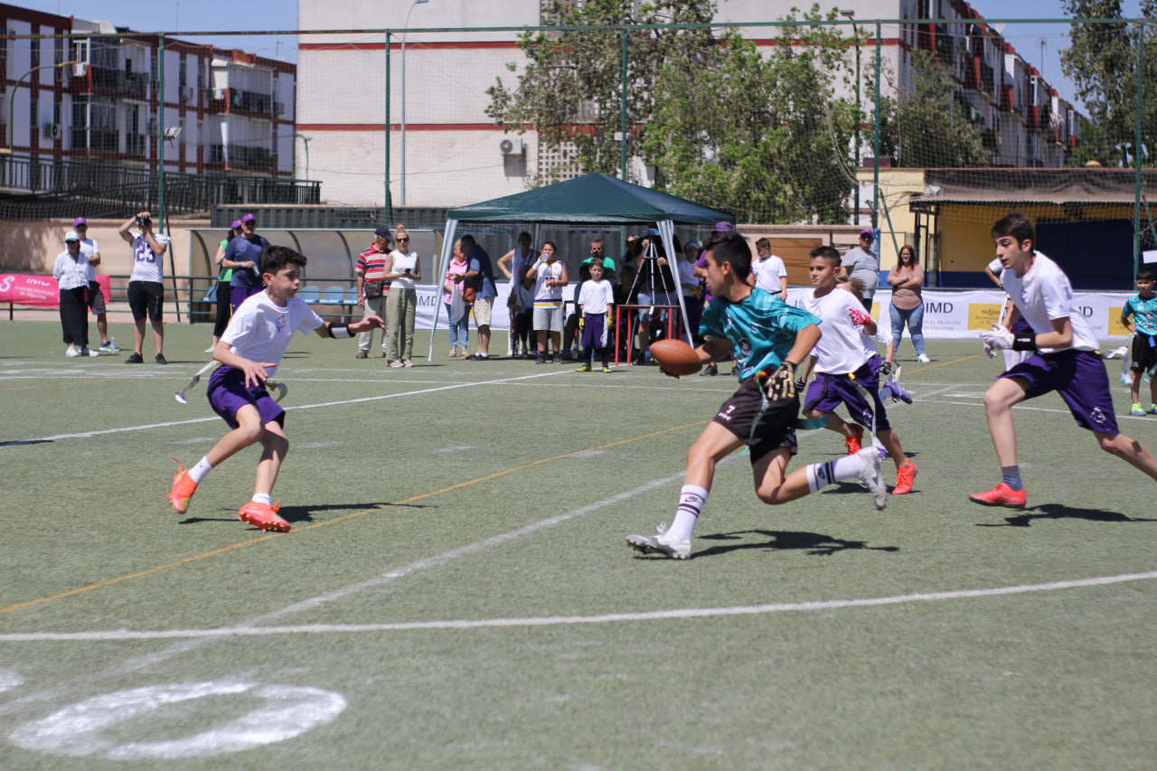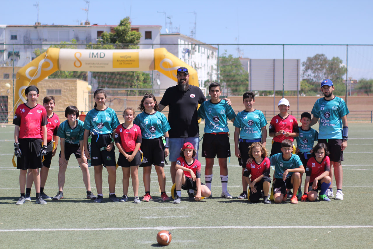 Participaron tres equipos que se dispusieron en un formato triangular de categoría SUB13. Compitieron los hasta ahora dos únicos clubes andaluces con categoría de estas edades y nuestro equipo. En primera lugar se enfrentaron Sevilla Linces y San Fernando 49ers. Los pequeños gaditanos, que apenas llevan una temporada entrenando, aún no se habían estrenado y este torneo supuso su primera experiencia en partido. Y se hizo notar, con lo que los Linces ganaron sin dificultades. Mismo guión ocurriría después con los extremeños, que cumplían contra los 49ers también con garantías.