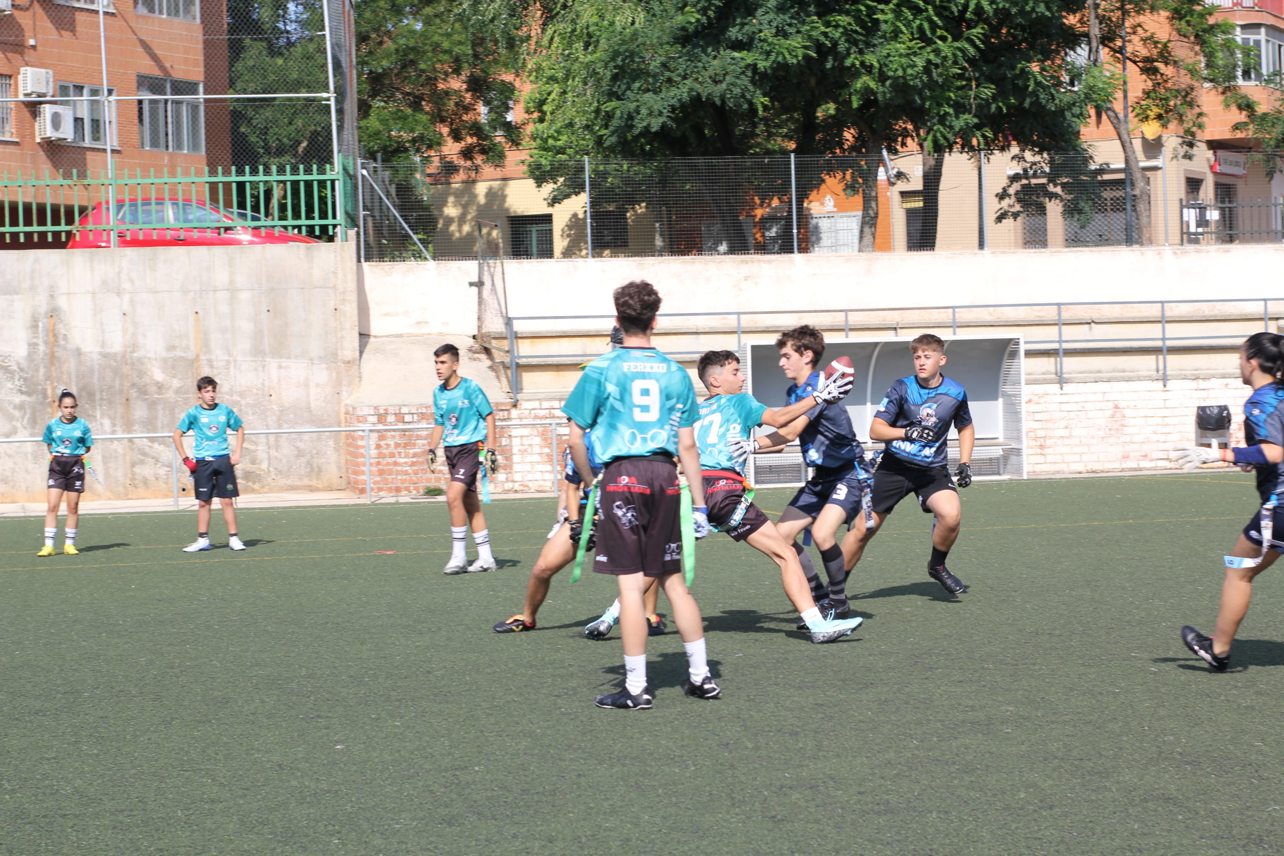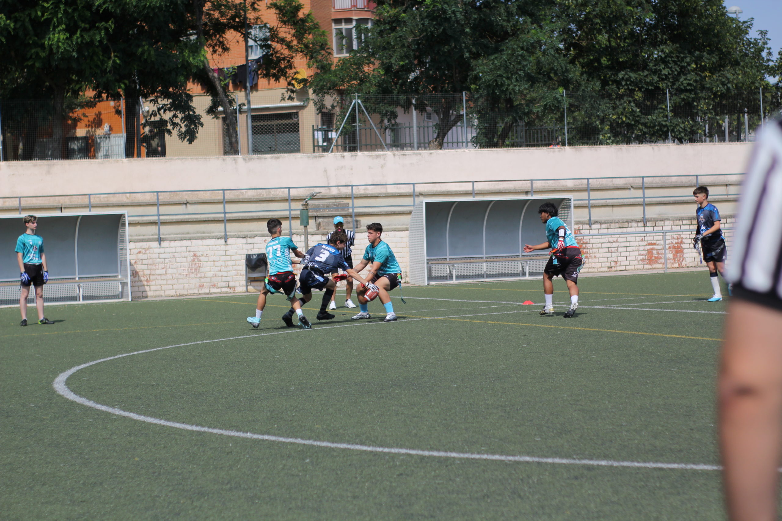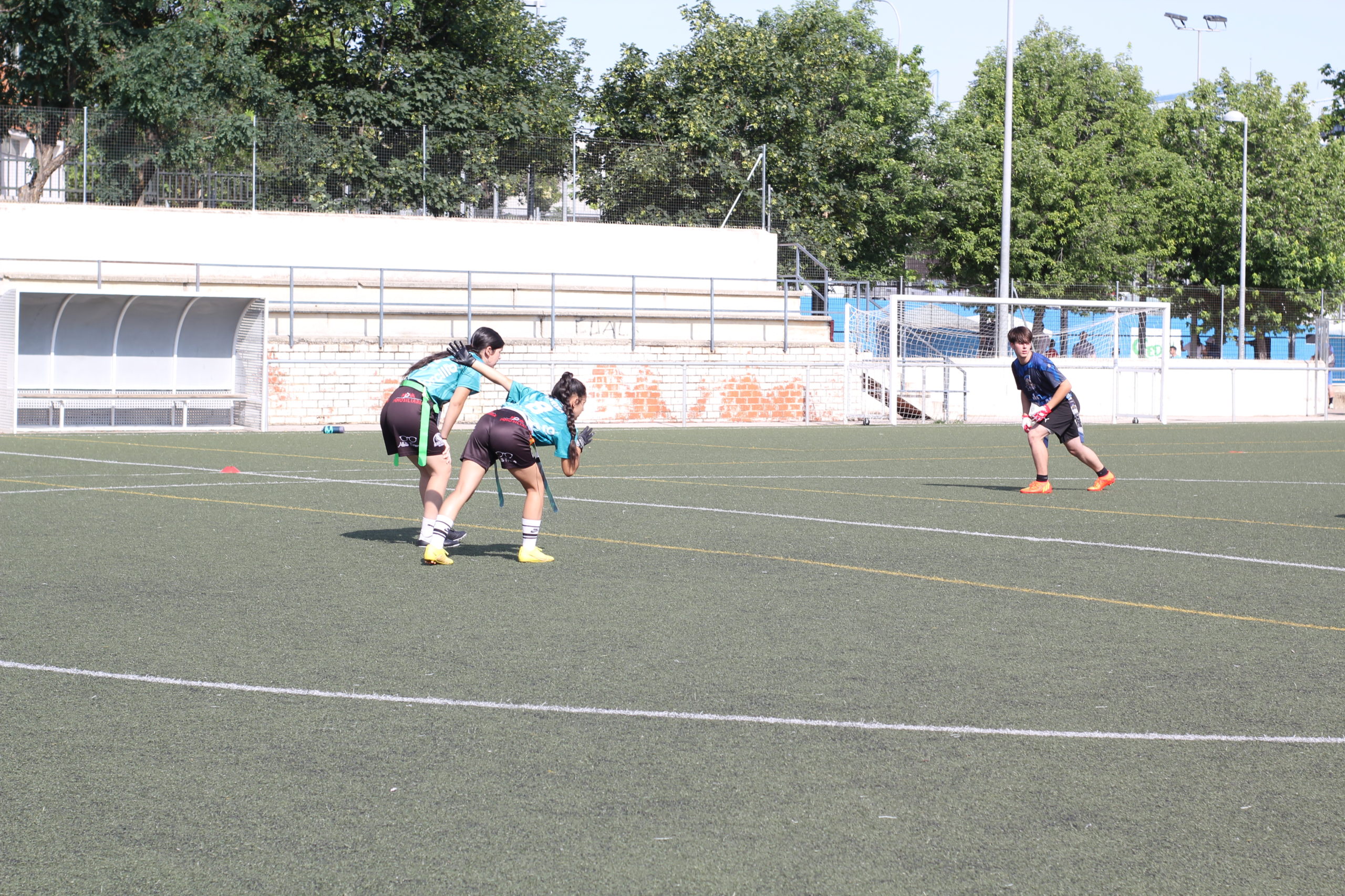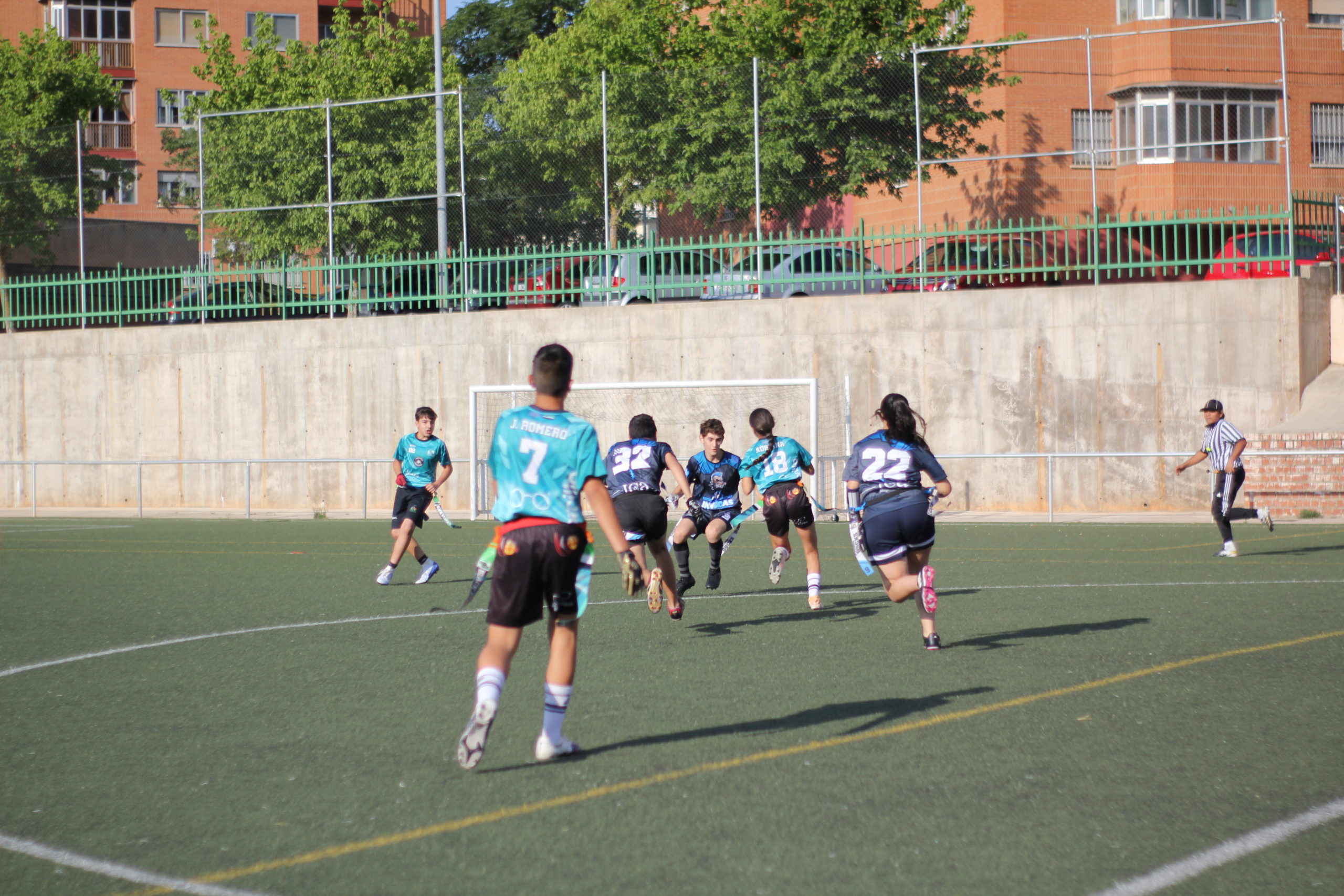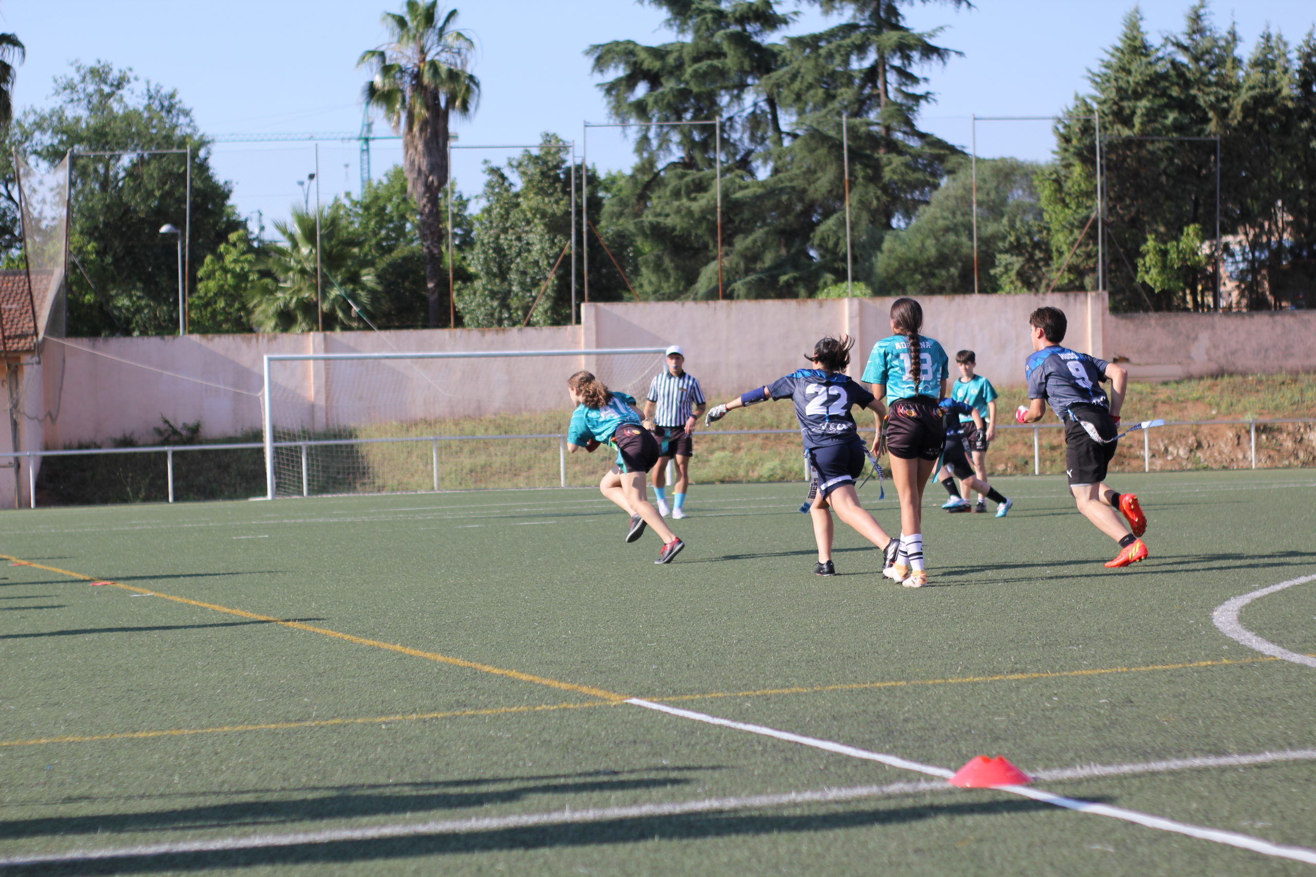 Entraban en acción los cadetes y también tendríamos una primera parte muy igualada. No conseguíamos despegar en el marcador y solo ganábamos por una bomba de Julieta Luque lanzada a Adrián Caballero que recibía para escaparse hasta la endzone (6-0). Adrián, con buenas acciones ofensivas y defensivas, terminaría siendo el MVP U17.