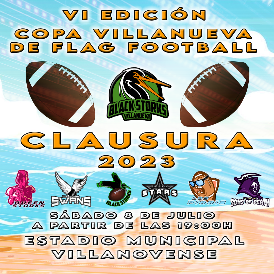 Entrerríos Sons of DeathLa última eliminatoria previa era entre las Queen Storks de María del Mar Díez y Ana Carmona, y los Entrerríos Sons of Death de Yakira Rodríguez. Con la madre de María del Mar como quarterback, pudieron anotar con una maravillosa jugada protagonizada por la joven Rocío, familiar de Carmen y Ángela Loné que siempre habitúa a competir en nuestras clausuras (6-0). El grupo de Entrerríos jugó constantemente en profundo con Andrés Cabanillas como novedoso quarterback y no tuvieron éxito. Aunque en defensa no permitirían más anotaciones, destacando el socio Juan “Espi” que quitó varias flags rápidamente y se llevó el premio a mejor defensor. Una intercepción de María del Mar Díez volvió a arruinar a la ofensiva de Sons of Death que caían eliminados por la mínima.