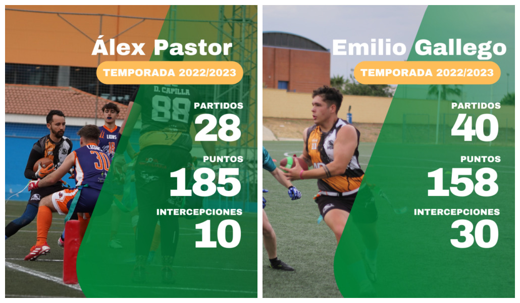 En este curso 2022/2023 llegó el ansiado regreso de uno de los jugadores incondicionales de Black Storks tras casi tres años de parón, Álex Pastor. Flamante MVP de la Liga Extremeña, ha finalizado la temporada como máximo anotador del club con 185 puntos (29 TDs, 9 puntos extras y uno de dos). También se ha notado la irrupción de Emilio Gallego, quien volvió avanzada ya la temporada pasada 21/22 y esta ha estado desde el inicio y, a pesar de lesiones, es el segundo máximo anotador con 158 puntos (25 TDs y 8 conversiones).