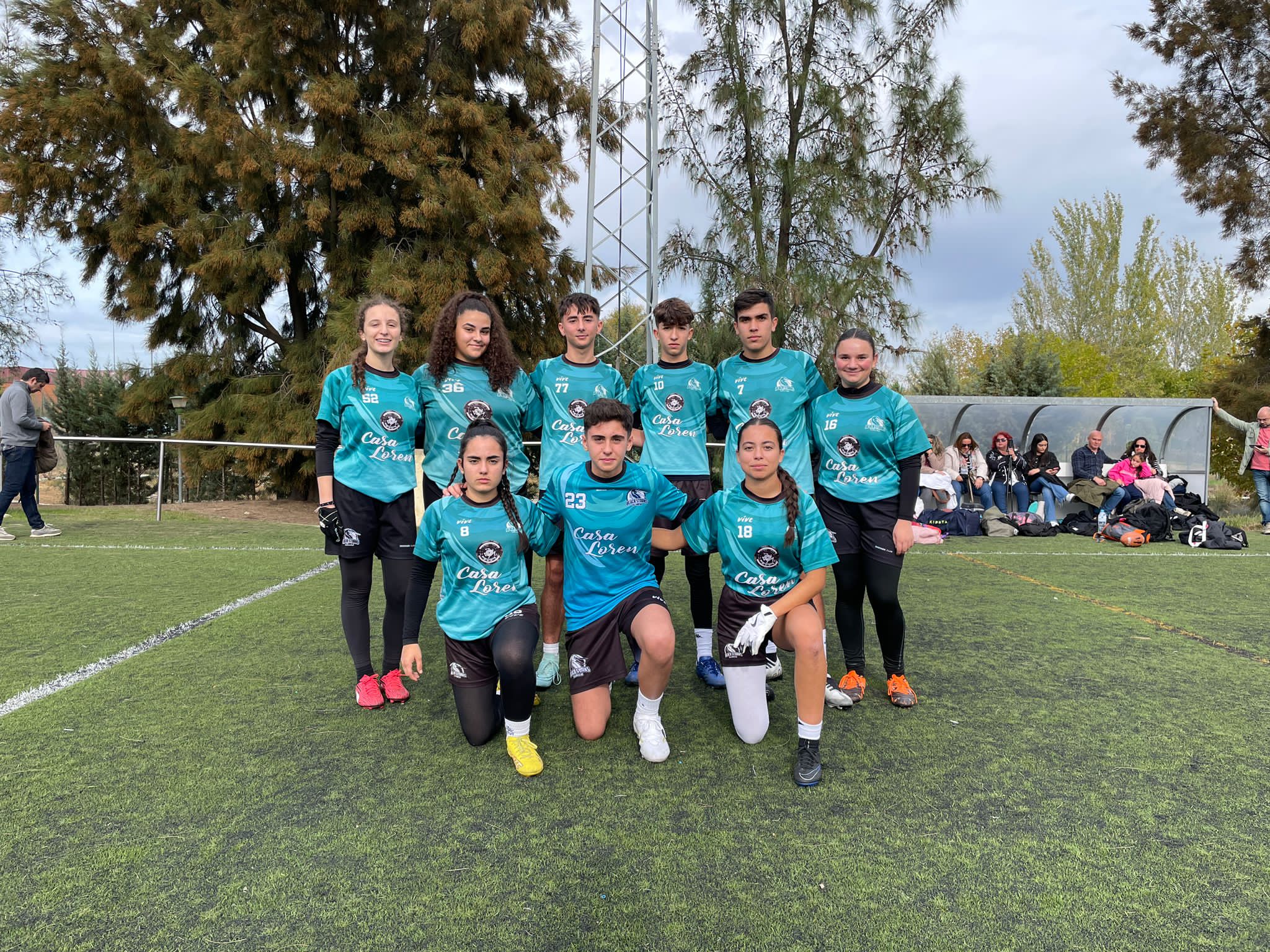 Finalmente, con dos touchdowns más lanzados por Víctor Calle para Emilio Gallego y Julieta Luque como novedosa center, convirtiendo todos los extras y con un safety por sack del blitzer José Parejo, completábamos una victoria clara por treinta puntos a nada. Las conversiones las recibían Emilio y Lorenzo Arroyo en su regreso a la competición extremeña, lo que a su vez demuestra el profundo equipo con el que contamos este año y la gran variedad de opciones y amenazas para los rivales que tenemos en Black Storks.