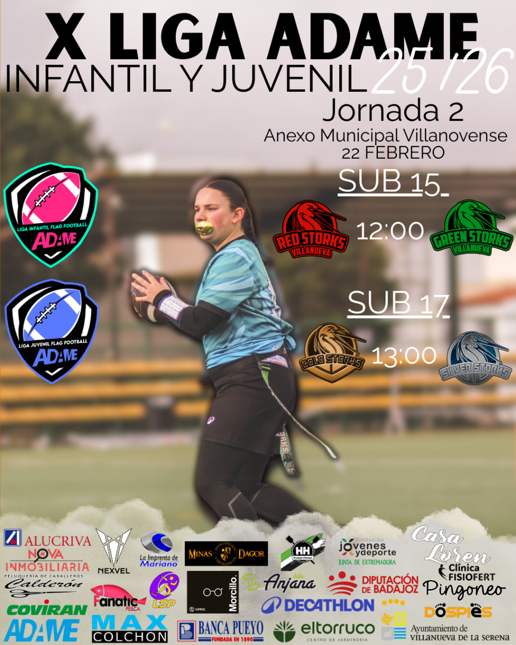 Este domingo 22 de febrero en el Anexo Municipal Villanovense desde las 12:00h, también tendremos acción en casa con la Jornada 2 de las Ligas Infantil y Juvenil ADAME Villanovense 2026.