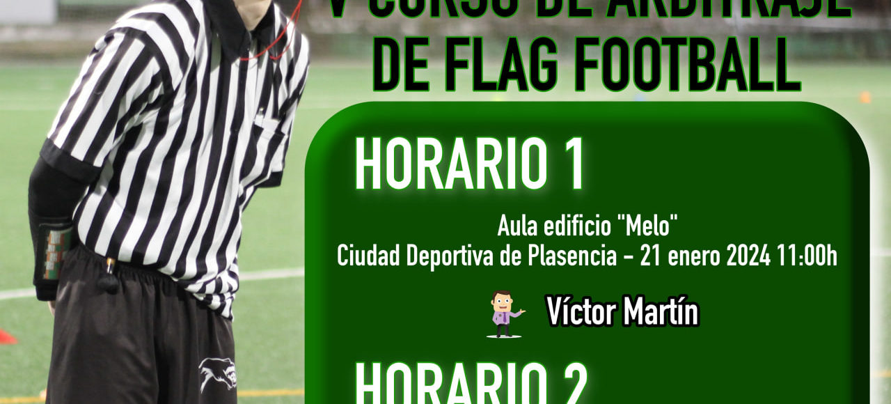El próximo domingo 28 de enero desde las 10:30h de la mañana tendrá lugar un nuevo curso arbitral de flag football en Villanueva de la Serena. Lo acogeremos en nuestra sede del club, en el Edificio Multiusos (nº 55) de la Plaza de los Conquistadores.Read More