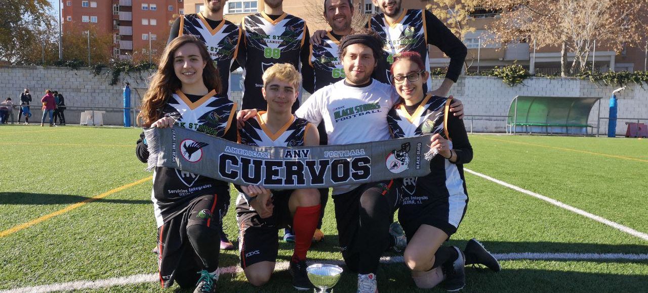 Otro día magnífico de Flag Football que disfrutamos en Fuenlabrada el sábado 29 de diciembre de 2018 en el Campo de Fútbol Loranca. Por tercera vez participamos en el Torneo Navideño que organiza anualmente por estas fechas nuestros amigos de ANV Cuervos, y repetimos la segunda posición que logramos el año pasado. Primeramente nos enfrentamos a los locales y, tras un final de infarto, conseguimos hacernos con la victoria por...Read More