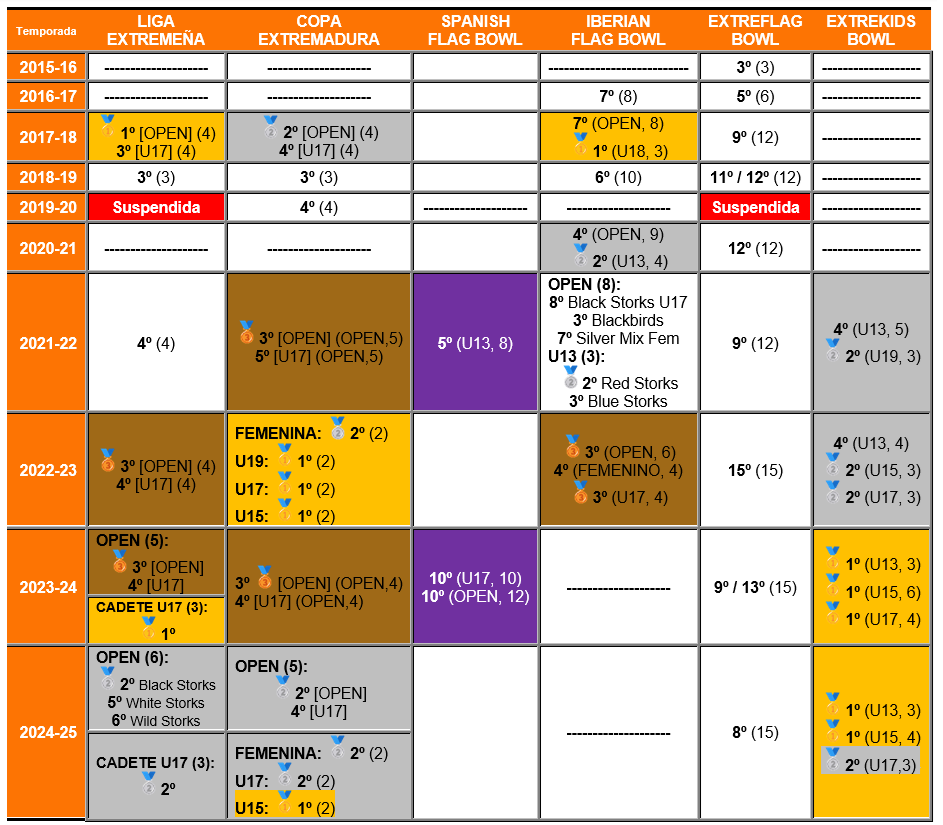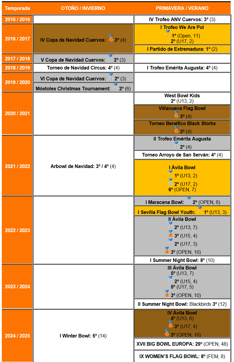 *Entre paréntesis se indican la categoría de la competición y el número de equipos participantes.