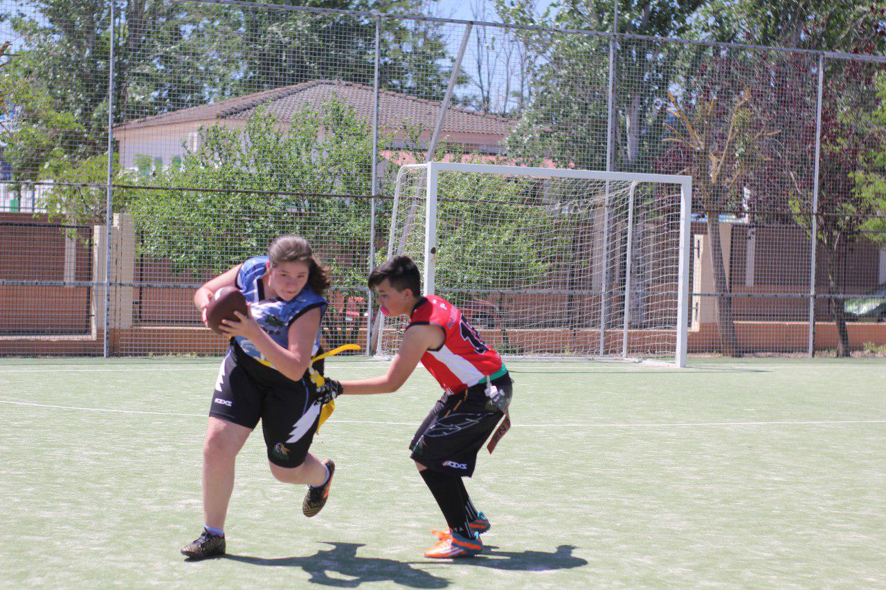 El Flag Football es una modalidad de fútbol americano en la que no existe el contacto. En vez de placar al jugador contrario para detener la jugada, se debe retirar uno de los dos flags que cuelgan de un cinturón. Debido a que no se permite el contacto físico no es necesario usar indumentaria protectora (casco, coraza), lo que abarata muchísimo la práctica del deporte.